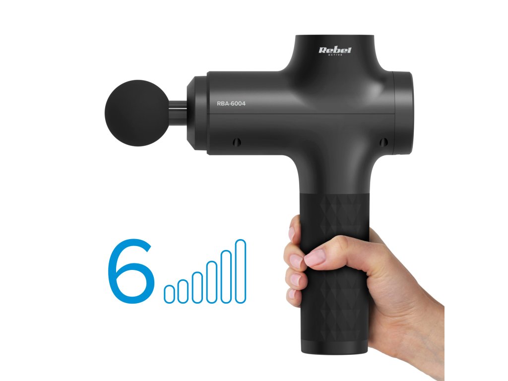 Masážna pištoľ Rebel má 6-stupňové nastavenie zdvihov v rozmedzí od 1 800 do 3 000 za minútu. Zvoľte jemné vibrácie alebo intenzívnu hĺbkovú masáž a nechajte svoje svaly rýchlo a bezpečne zregenerovať.