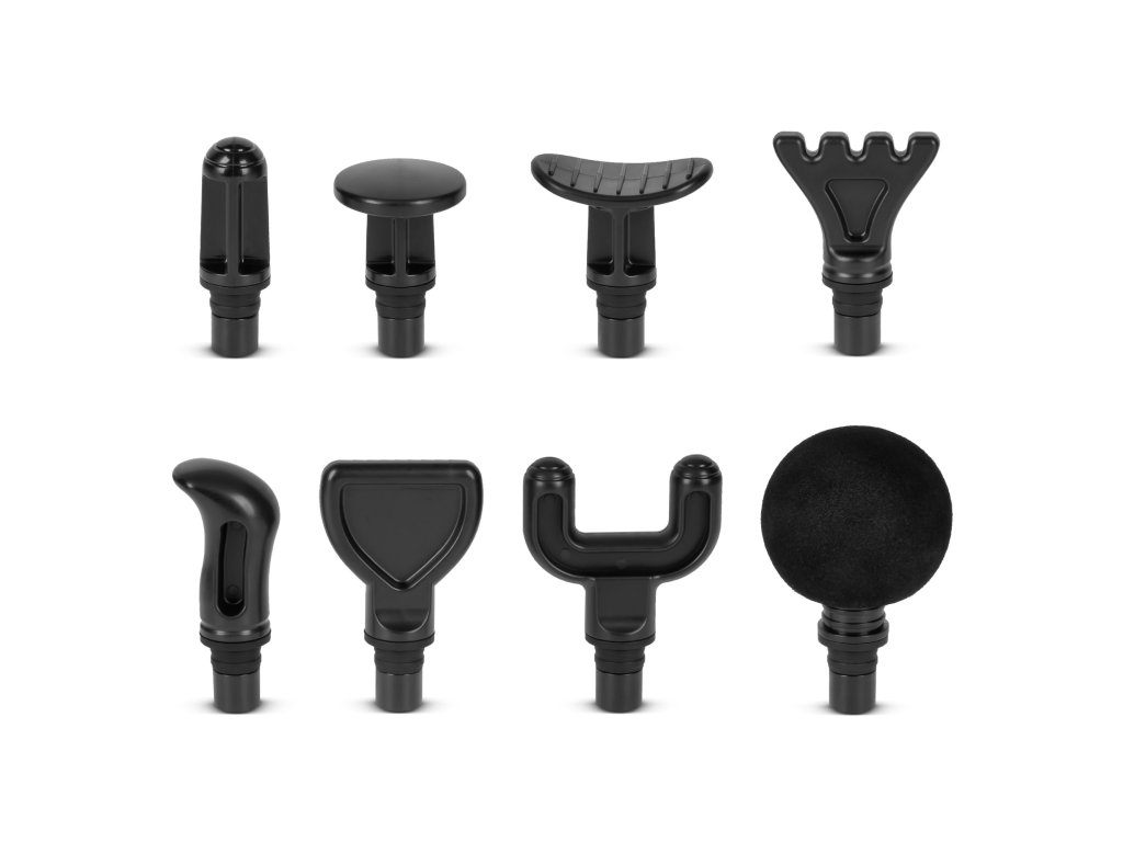 Pištoľ Rebel je vybavená 8 nadstavcami určenými pre rôzne druhy masáží. Správnym výberom môžete vykonávať všeobecnú bodovú masáž alebo veľké svalové skupiny, prípadne sa zamerať na chrbticu, ruky či chodidlá. Vyberte si správne prekrytie a získajte optimálne výsledky.