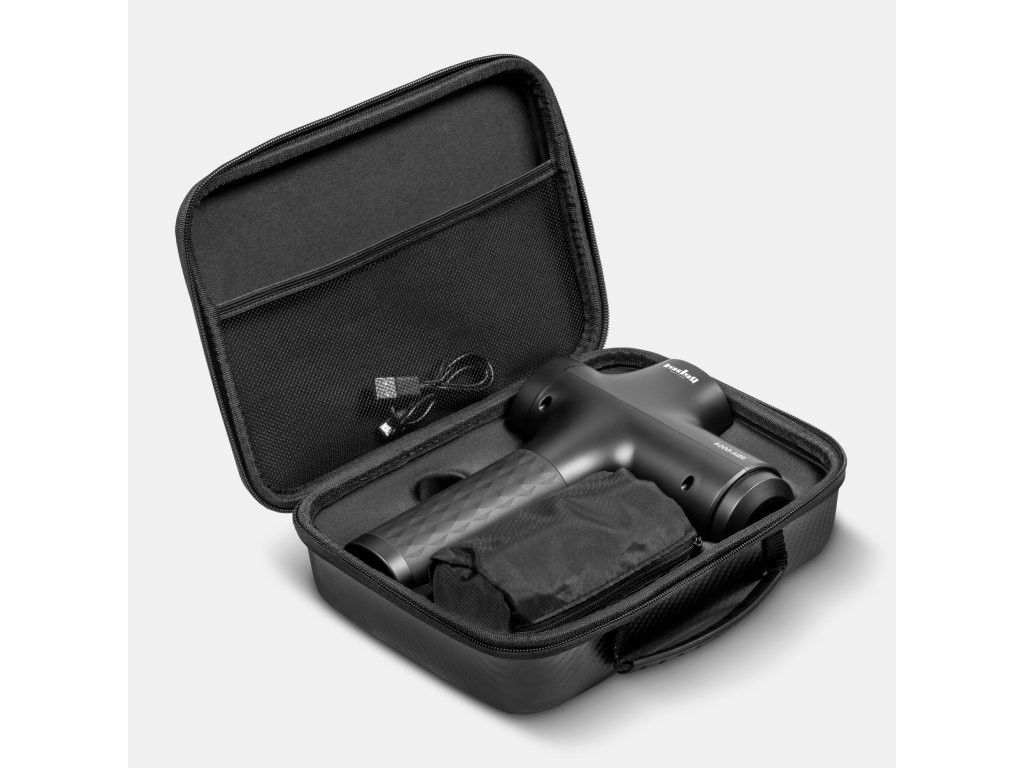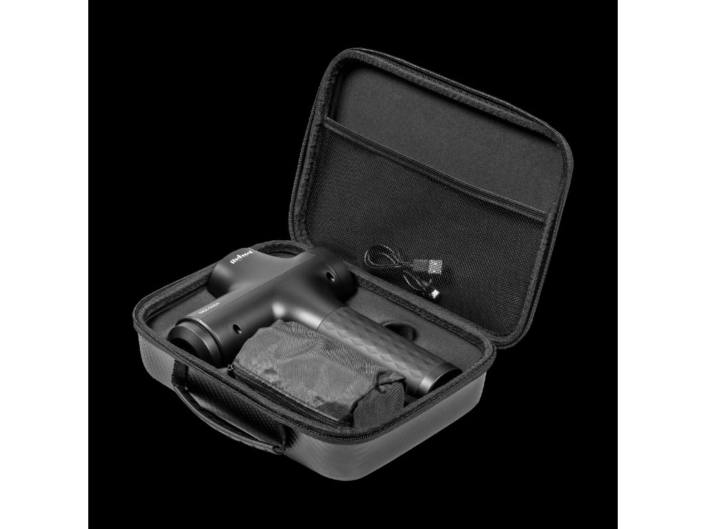 Masážny prístroj Rebel je dodávaný s pevným puzdrom, ktoré umožňuje pohodlné skladovanie a prepravu prístroja. Vďaka tomu môžete mať masážnu pištoľ stále pri sebe - doma, v práci alebo v posilňovni.