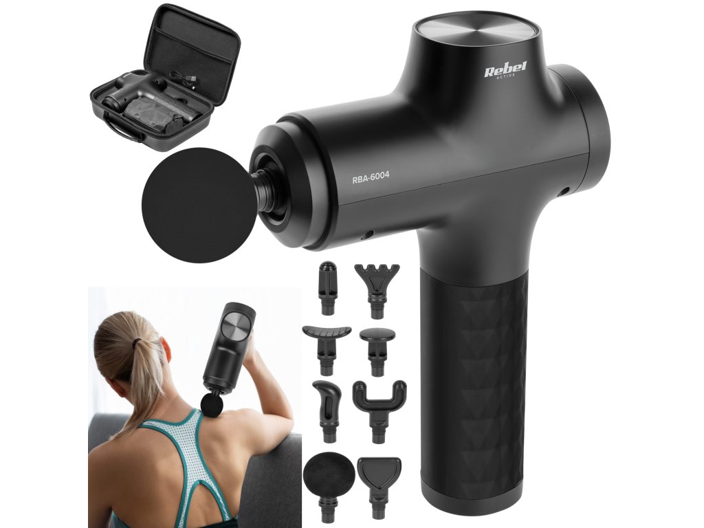 Masážna pištoľ, 8 nástavcov, REBEL ACTIVE