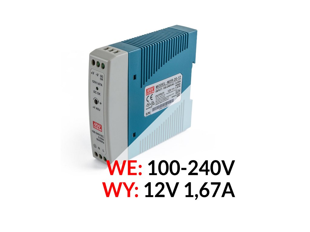 MDR-20-12 - Napájací zdroj 12V / 1,67A na DIN lištu - Mean Well