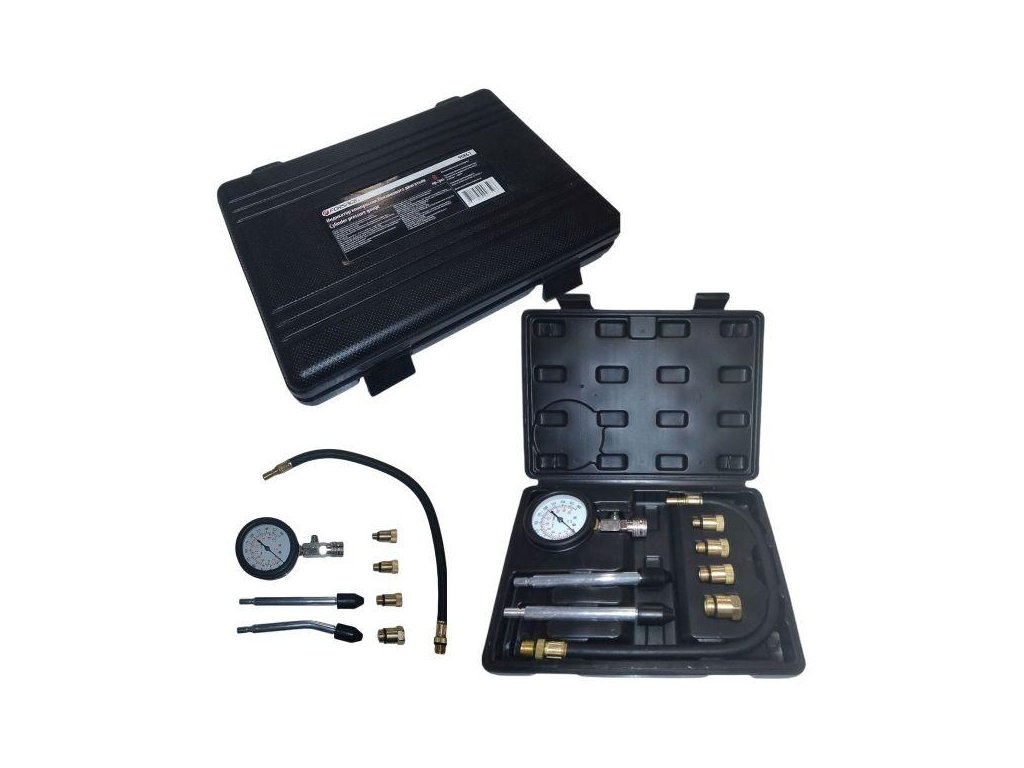 Súprava slúži na kontrolu tlaku kompresie v valcoch benzínových motorov.