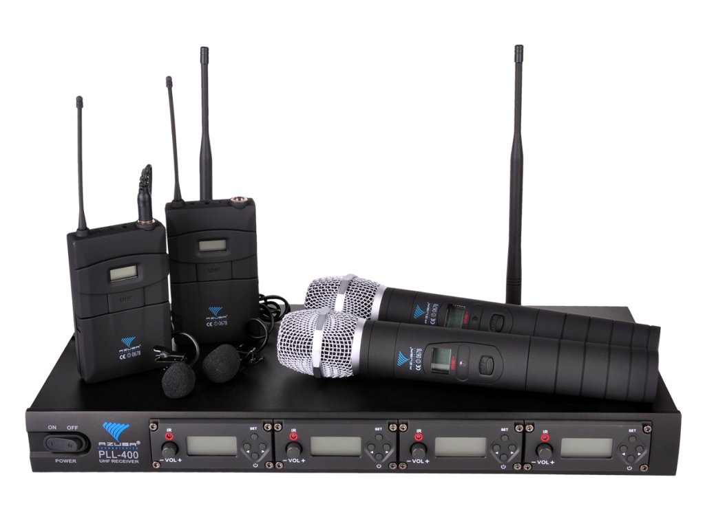 Mikrofón 4 kanály PLL-400 UHF (2 pre ručný mikrofón + 2 pre klip)