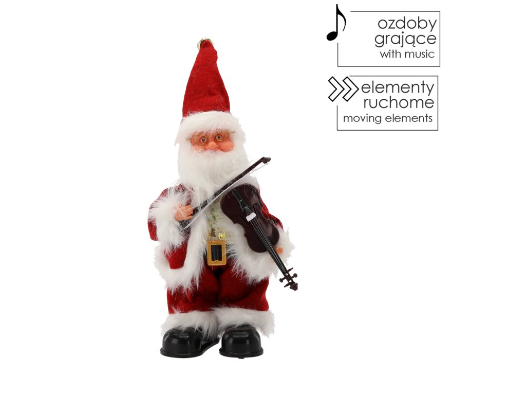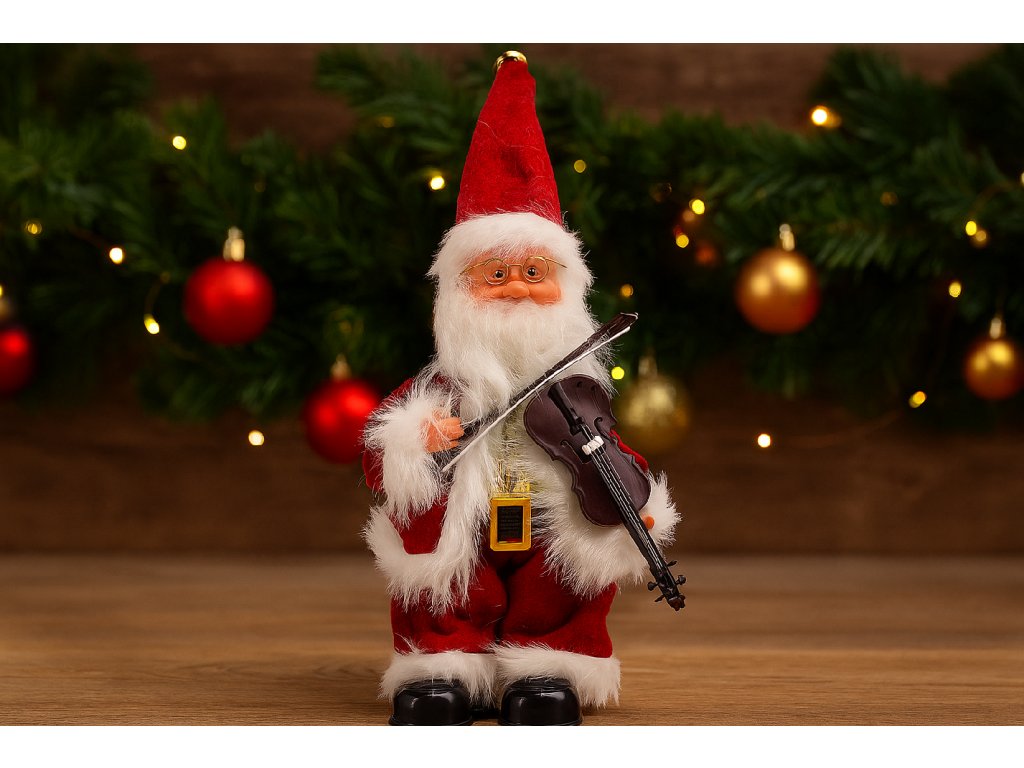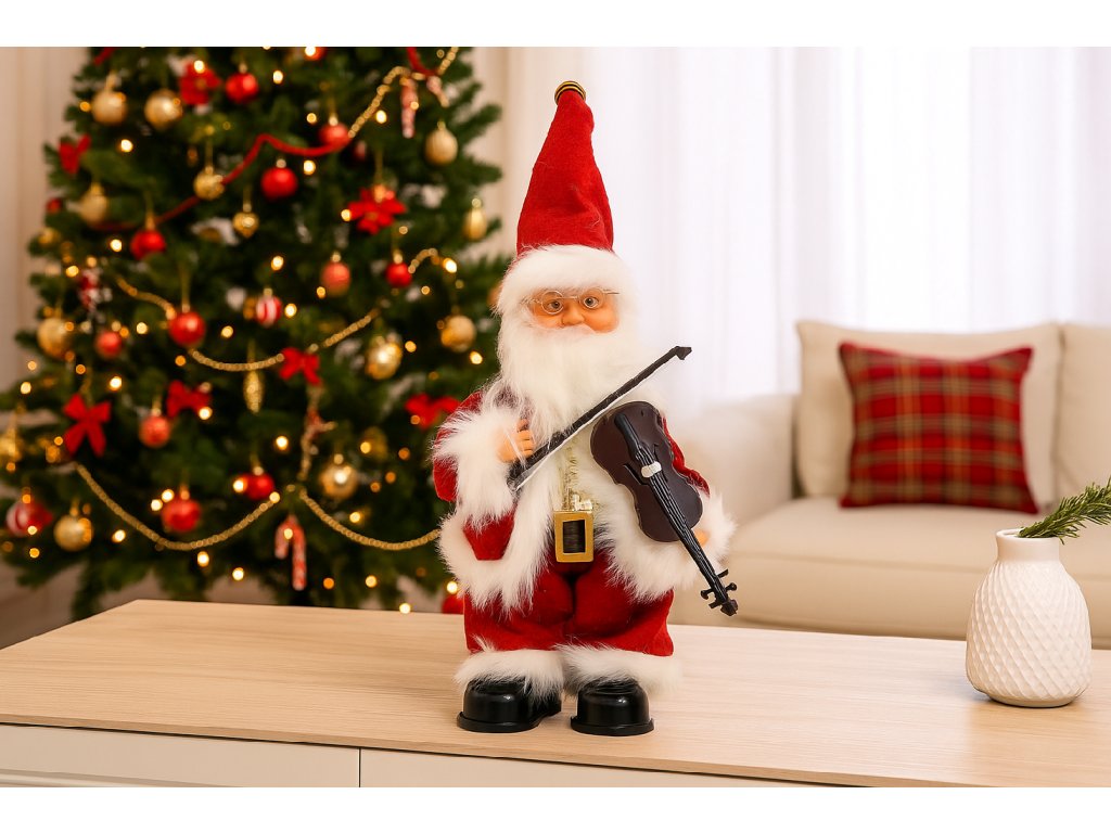 Hrajúci Mikuláš s husľami 30,5 cm – pohyblivá ##vianočná## ozdoba so zvukom. Ideálna dekorácia do obývacej izby alebo ako darček. Prineste do interiéru kúzlo a radosť ##sviatkov##.