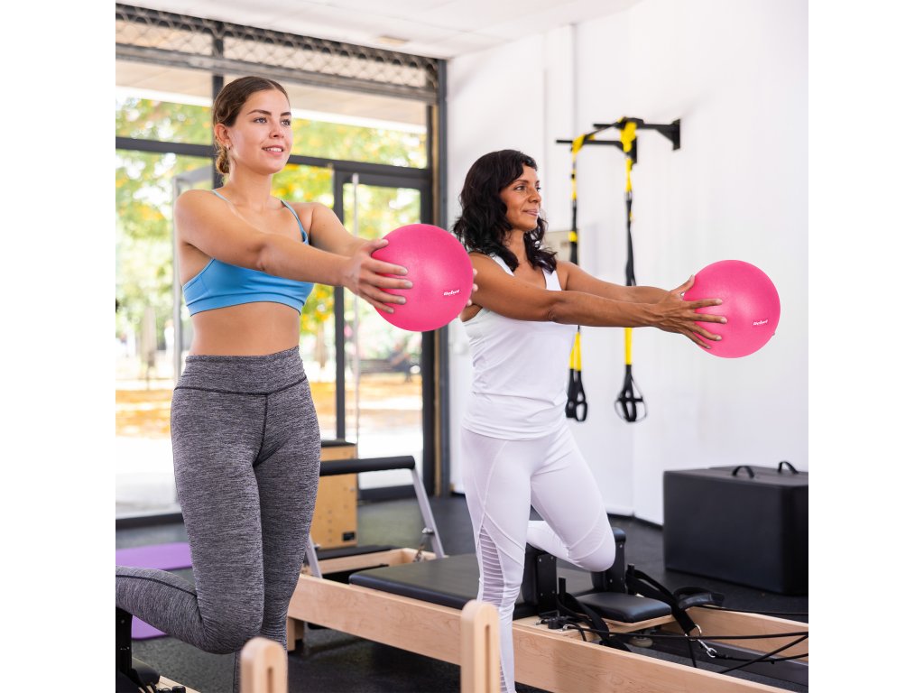 Mini gymnastická lopta na pilates rehabilitačná 25 cm, farba ružová, REBEL ACTIVE