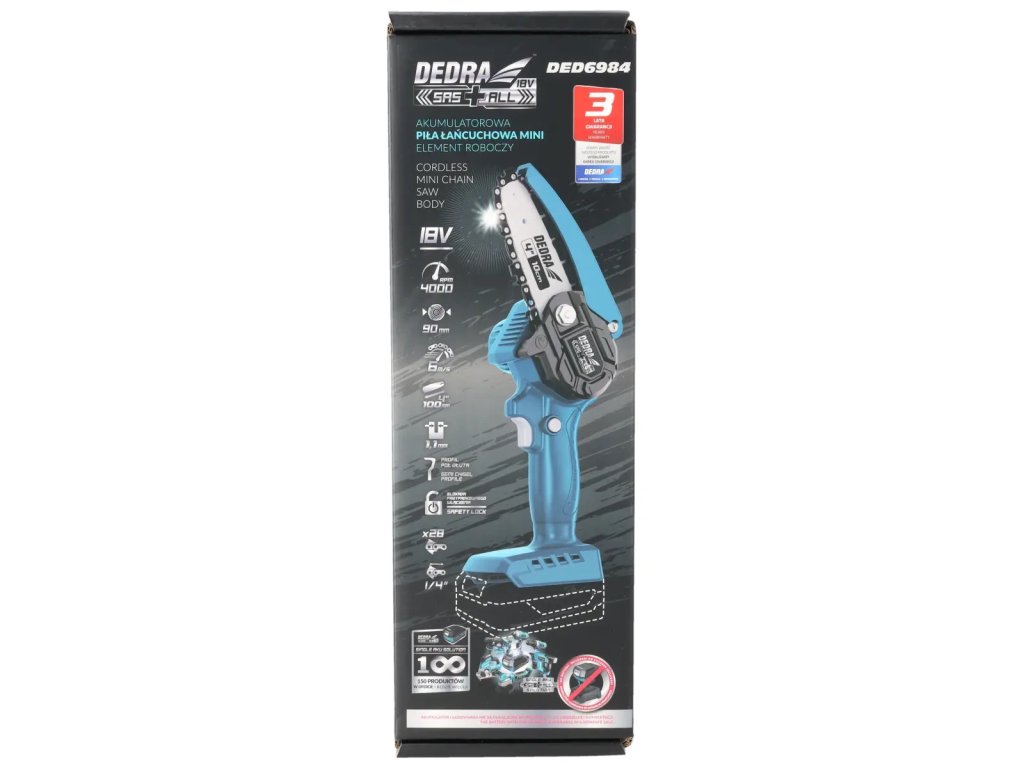 Technické údaje mini reťazovej píly, akumulátorovej píly 18V, DEDRA SAS+ALL DED6984: