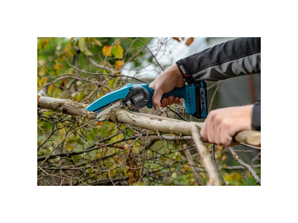 Mini reťazová píla akumulátorová DEDRA DED6984 – presné rezanie v každej priestore