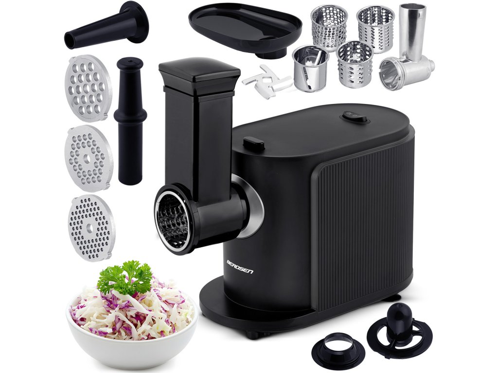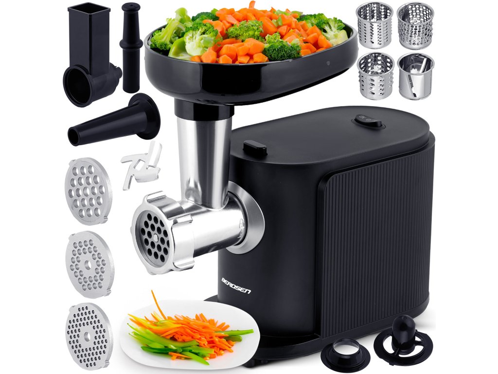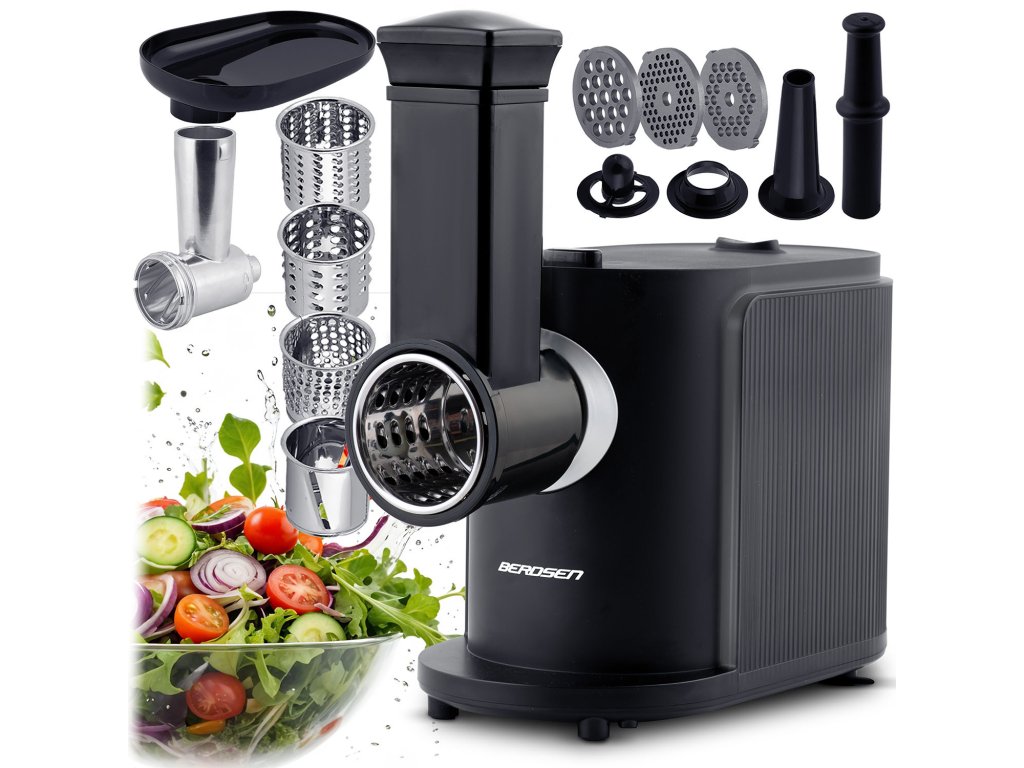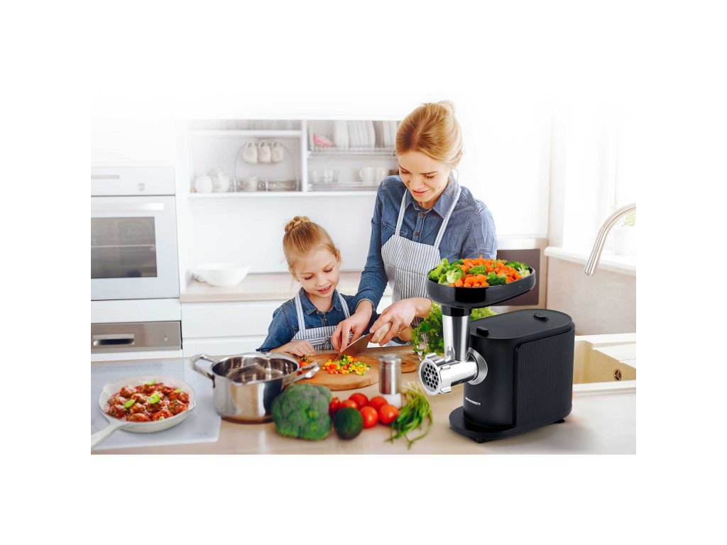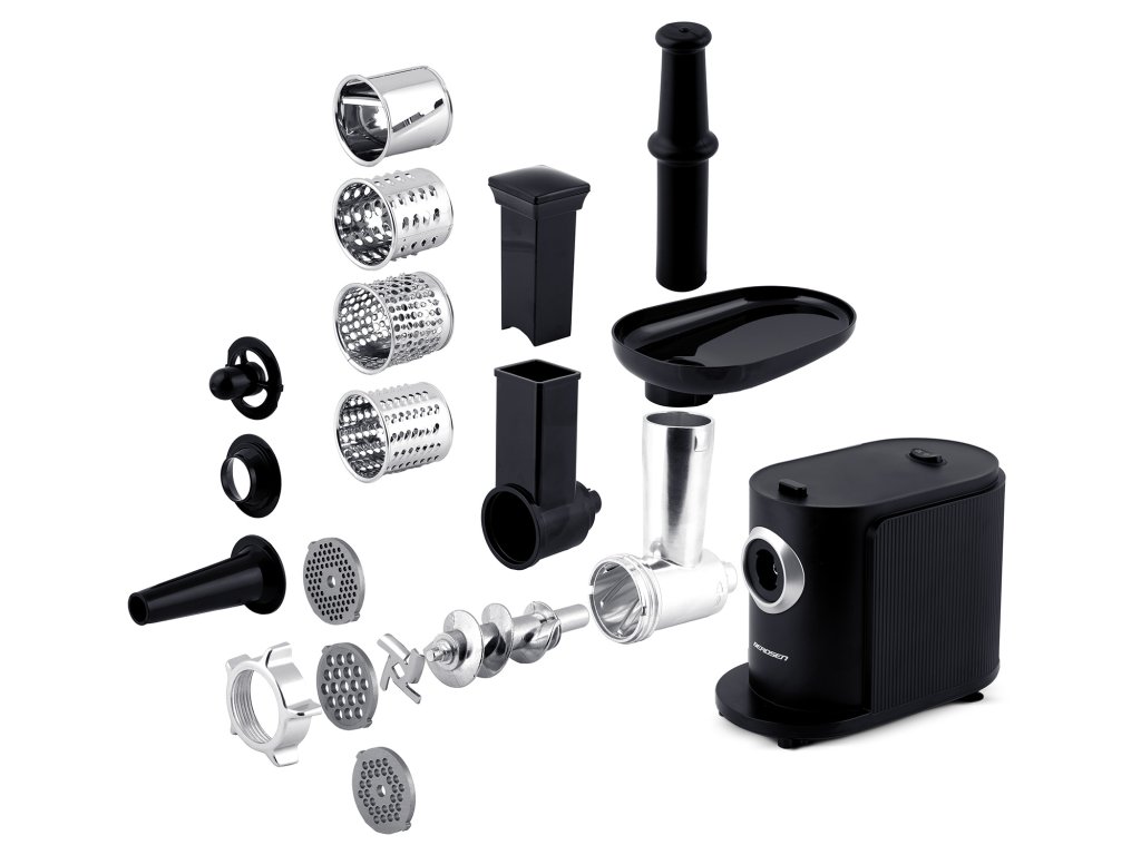Zariadenie je vybavené mäsiarskym nástavcom, orientálnym nástavcom a silným šnekom, ktorý jedlo dôkladne pomelie.