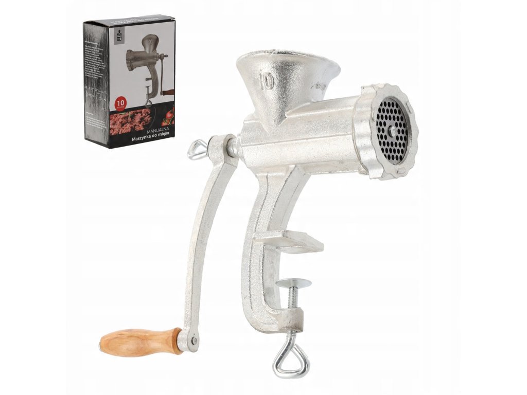 Ručný mlynček na mäso, spoľahlivý a solídny nástroj do každej kuchyne. Vyrobený z odolnej, voči korózii odolnej liatiny, garantuje dlhodobé používanie a efektívne mletie rôznych druhov mäsa, vrátane hovädzieho, bravčového, hydiny a rýb.