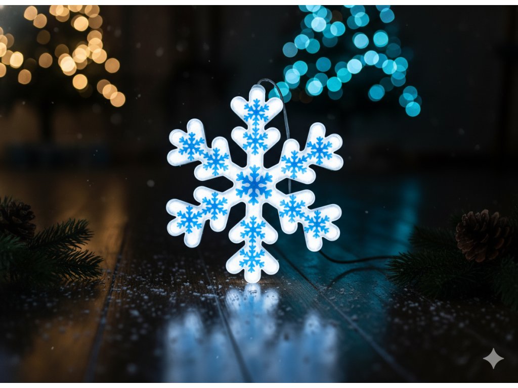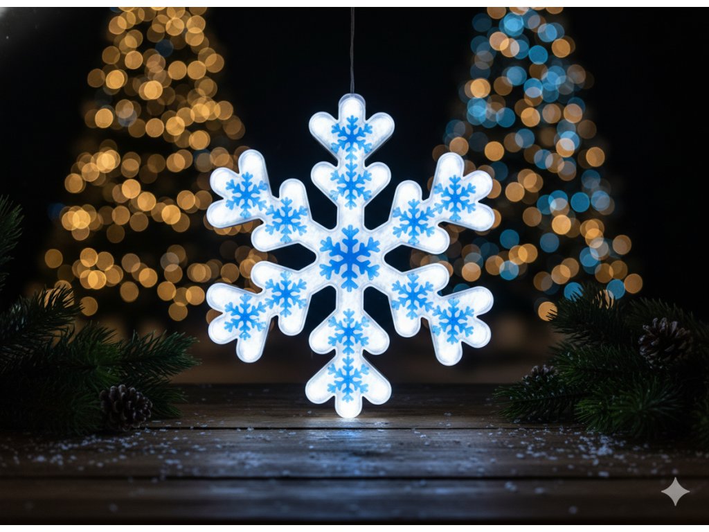 MODRÁ VLOČKA 40 CM NEON LED STUDENÁ BIELA *8332