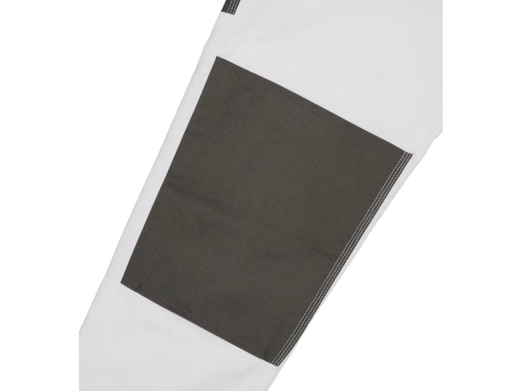Bezpečnostné nohavice WHITE LINE sú vyrobené zo zmesi polyesteru a bavlny. Materiál s gramážou 190 g/m? zabezpečuje dobrú cirkuláciu vzduchu a voľnosť pohybu. Dodatočné vystuženie v oblasti kolien. Funkčné vrecká vrátane vre cka na smartfón. Dvojito prešité švy pre väčšiu odolnosť. Vďaka bielej farbe sú nohavice vhodné najmä pre maliarov a štukatérov. Nevhodné do teplého počasia.
