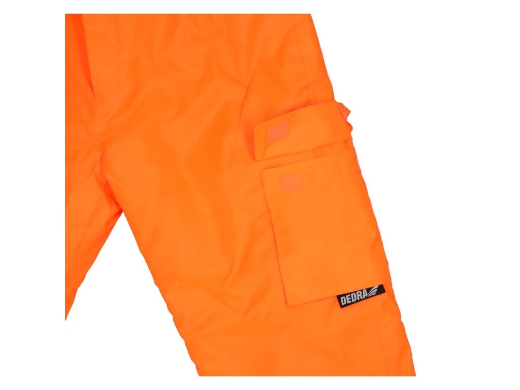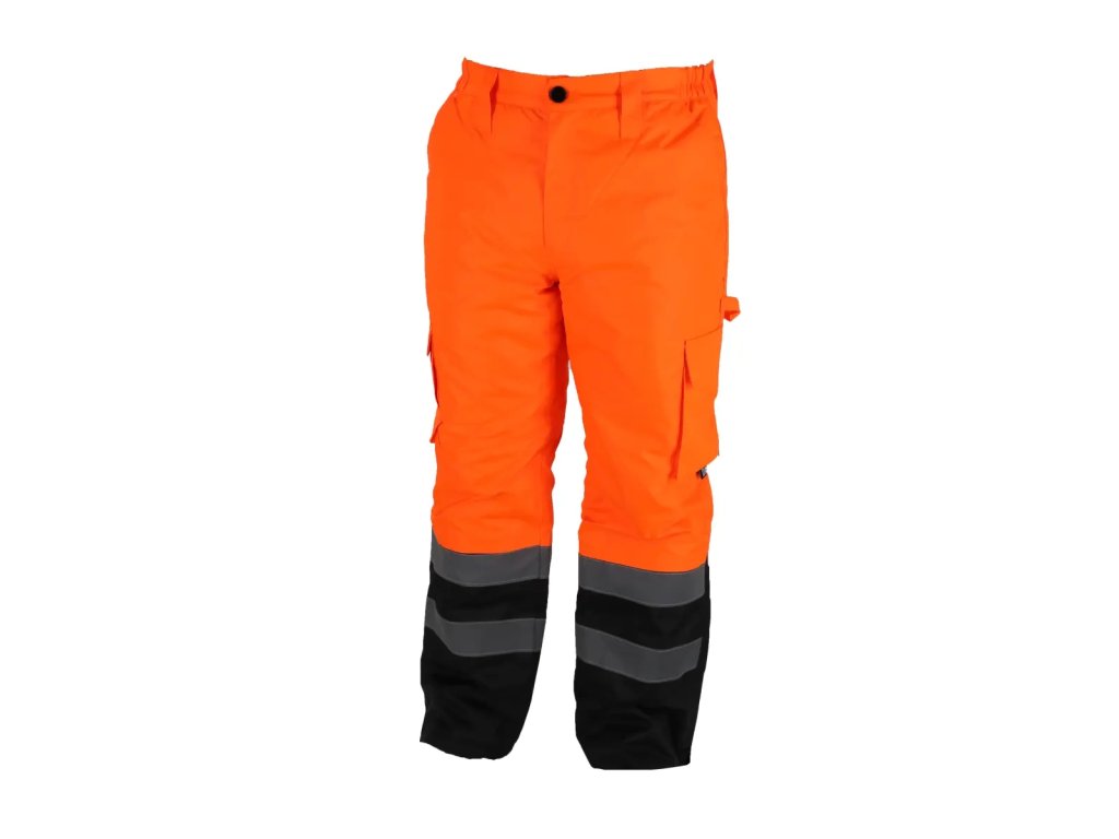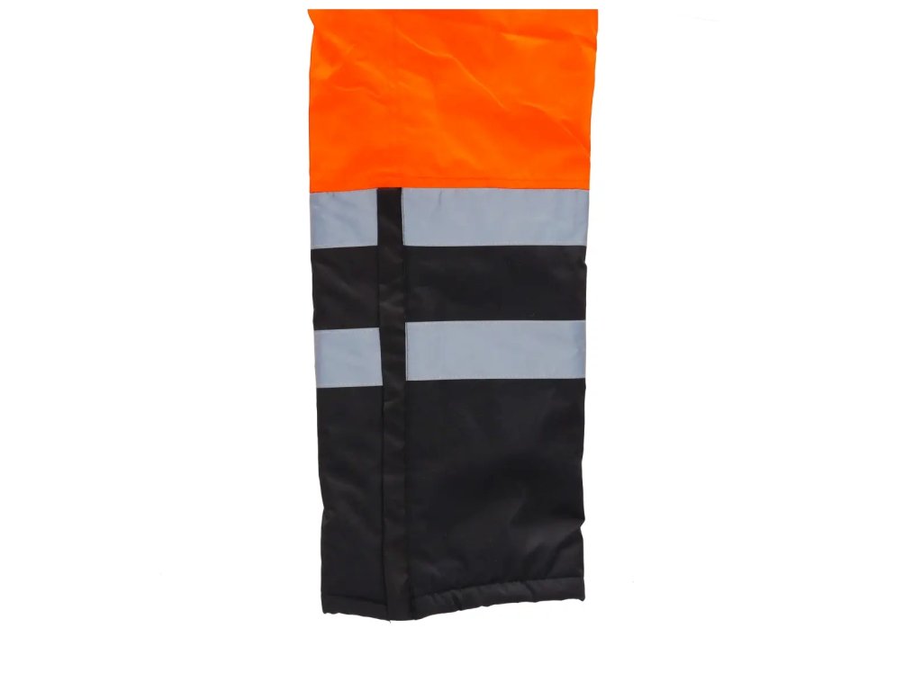 Reflexné otepľovacie nohavice sú vyrobené z tkaniny Oxford 300D s gramážou 180 g/m?. Tkanina je vetruvzdorná a vodoodpudivá do 2000 mm. Okrem toho sa používajú vodotesné švy. Nohavice majúprešívanú polyesterovú podšívku s gramážou 180 g/m? at aft ovú podšívku na vnútornej strane. Nohavice majú elastický pás a vzadu vysoký náplet. Praktické a funkčné vrecká a pútko na kladivo. Nohavice majú reflexné pásy na nohaviciach a navyše na páse, ktorézabezpečujú viditeľnosť v náročných podmienkach alebo po zotmení. Pásky sú zapečatené,široké 5 cm a certifikované podľa normy EN20471. Dostupné veľkosti od S do 3XL.