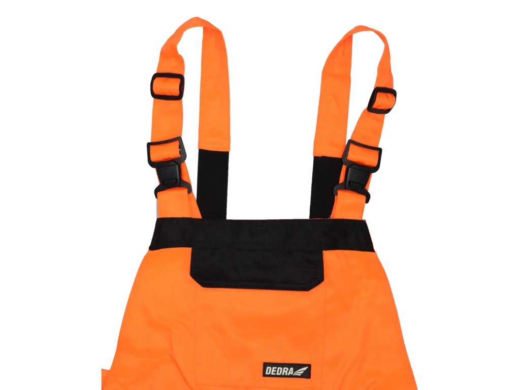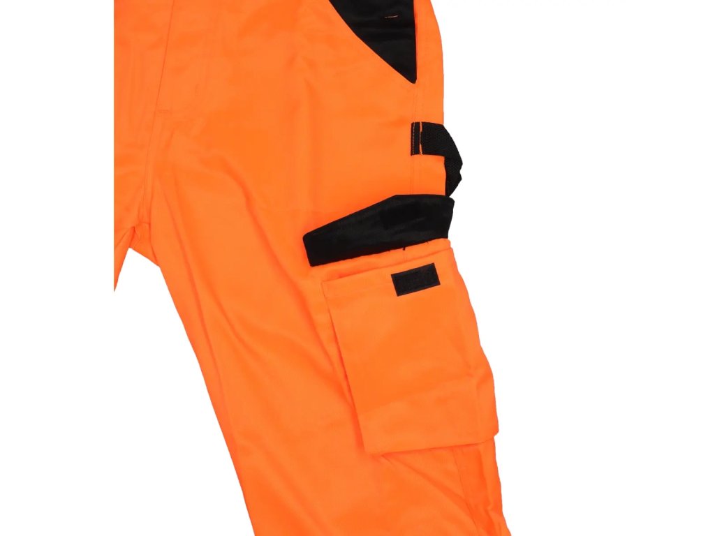 Záhradnícke nohavice sú vyrobené zo zmesi poly/bavlna s gramážou 250 g/m?. Nohavice majú elastický pás a nastaviteľné šle s všitými gumičkami. Nohavice majú 8 praktických a funkčných vreciek a pútko na opasok na kladivo. Reflexné pásky na nohaviciach a navyše na páse. Dostupné veľkosti od S do 2XL. Oranžováfarba.