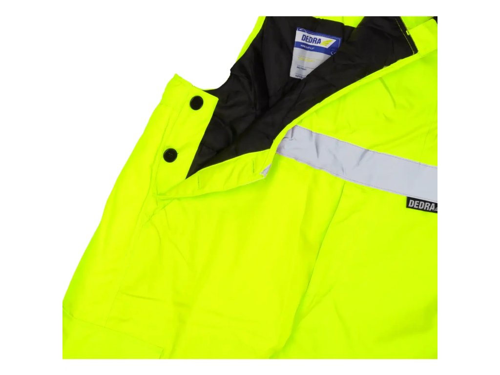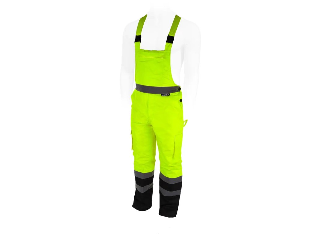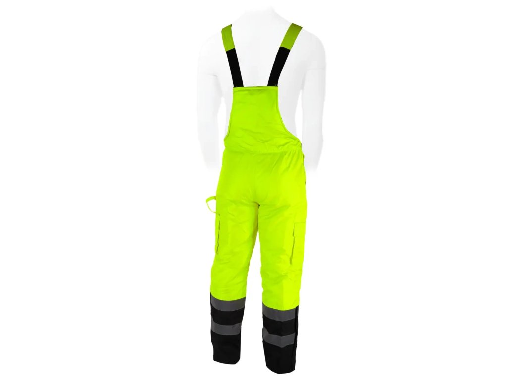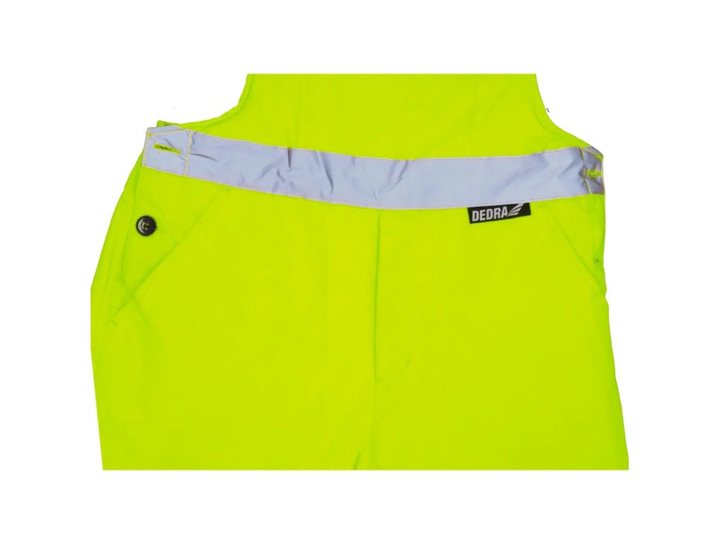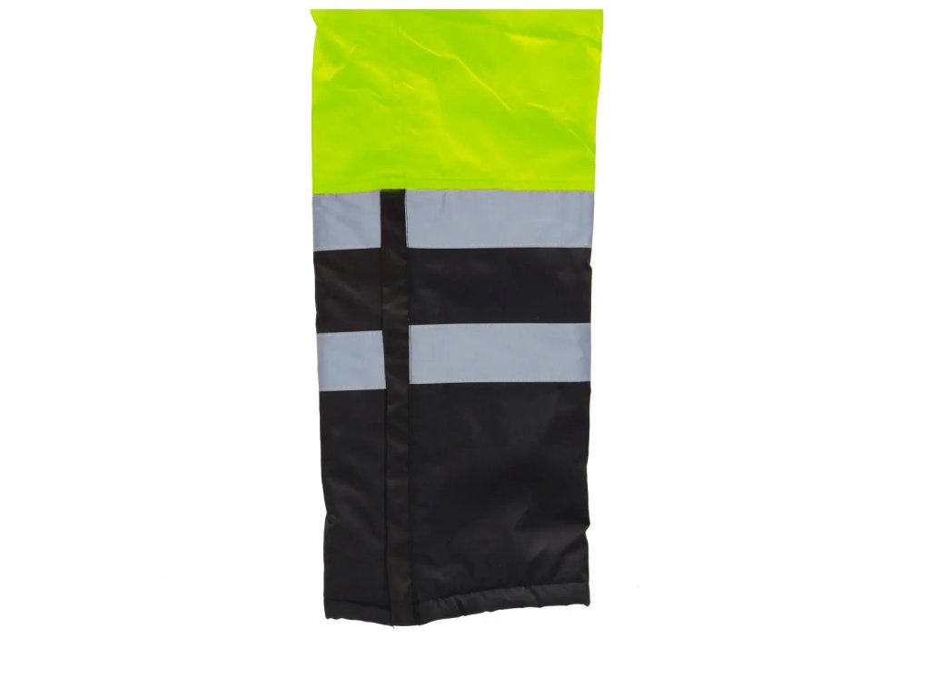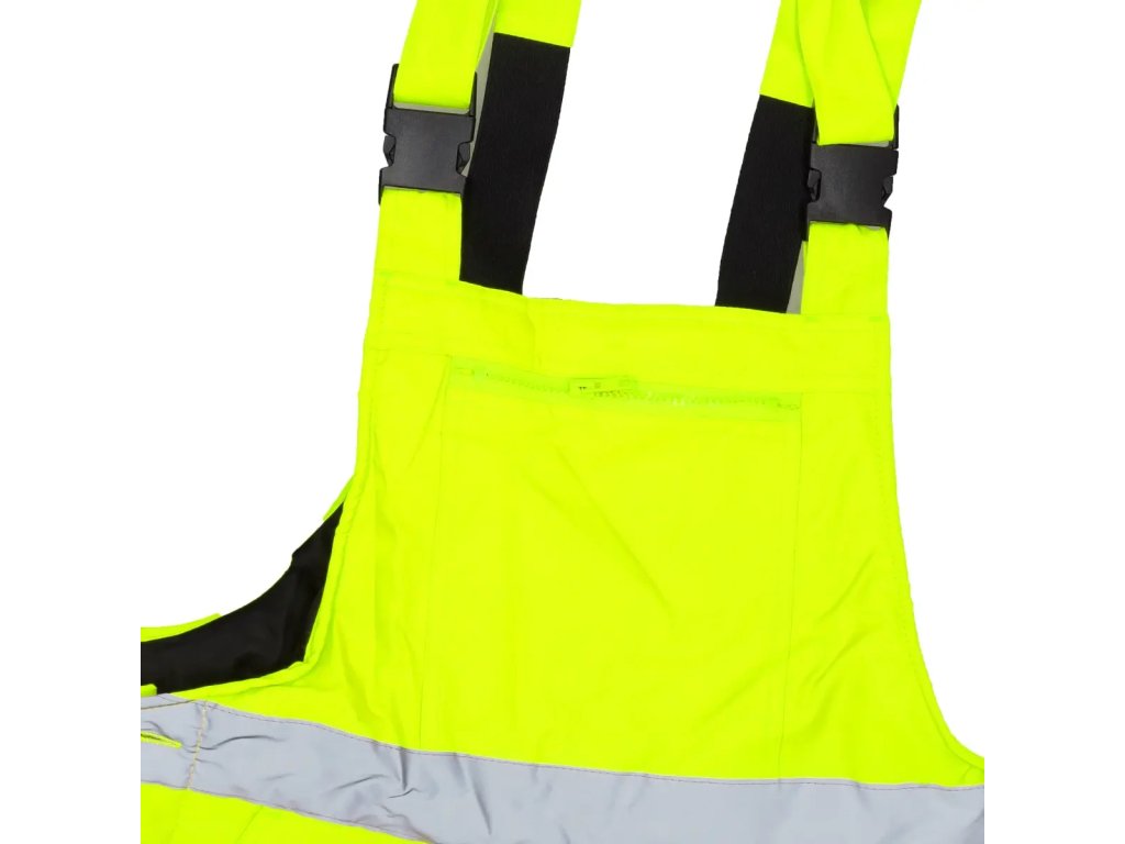 Reflexné nohavicesú vyrobené z tkaniny Oxford 300D s gramážou 180 g/m?. Tkanina poskytuje odolnosť proti vetru a vode do 2000 mm. Okrem toho sú tu vodotesné švy. Nohavice majú prešívanú polyesterovú podšívku s gramážou 180 g/m? a taftovú podšívku. Nohavice majú elastický pás a nastaviteľné šle s všitou gumou. Praktické a funkčné vrecká a pútko na kladivo. Praktické a funkčné vrecká, ako aj stopana kladivo. Na zaistenie bezpečnosti v náročných podmienkach alebo po daždi majú nohavice reflexné pásy na nohaviciach a tiežv páse. Pásky súzapečatené, široké 5 cm a certifikované podľa normy EN20471. Dostupné veľkosti od S do 3 XL.