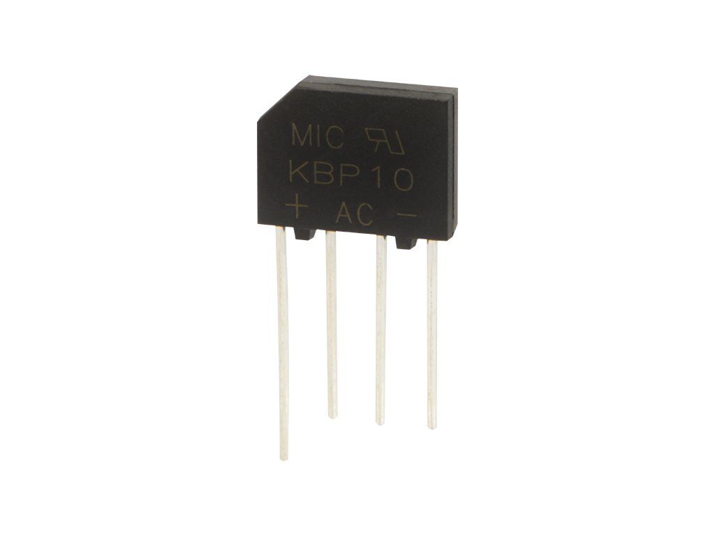 Mostík 1000V 2A KBP10 je kompaktný jednofázový usmerňovací mostík určený na prevod striedavého napätia na jednosmerné. Vďaka menším rozmerom sa hodí do priestorovo obmedzených elektronických zostáv, zdrojov a opravárenských projektov. Ide o spoľahlivý komponent pre bežné aj servisné použitie.