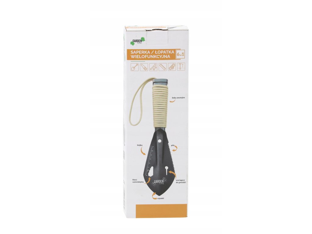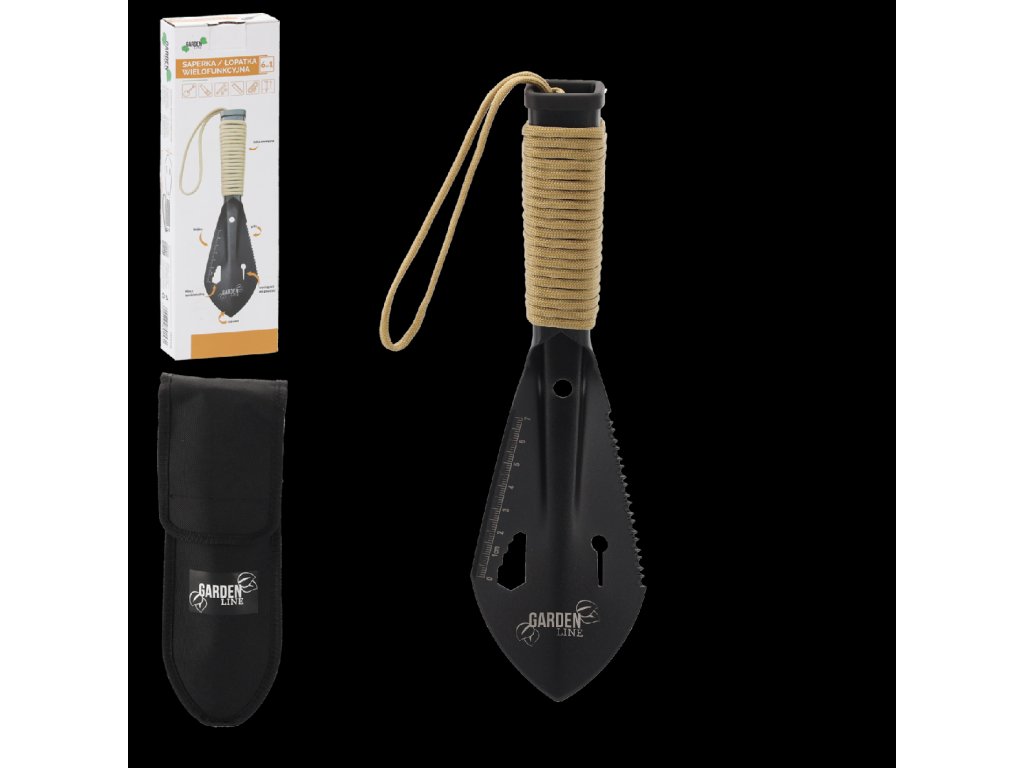 Viacúčelová lopatka/sapra so súpravou s puzdrom. Výborná na rôzne použitia v záhrade, na táborenie alebo v iných situáciách vyžadujúcich viacúčelové náradie. Jej nerezová oceľ zabezpečuje dlhodobú odolnosť a funkcie ako píla, vyťahovač klincov alebo šesťhranný kľúč ju robia veľmi praktickým náradím.