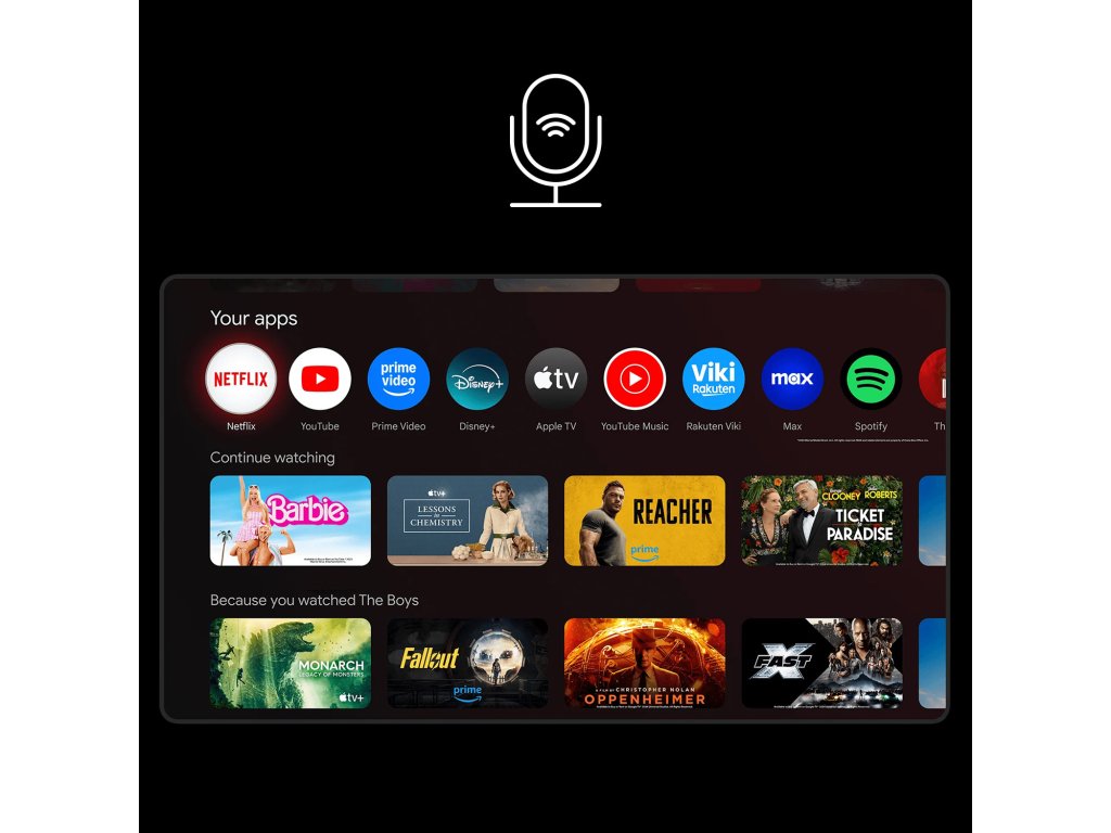 Váš televízor nikdy nebol taký užitočný. Stačí požiadať Asistenta Google, aby našiel film, spustil aplikáciu, prehral hudbu alebo ovládal televízor – všetko pomocou hlasu. Môžete tiež nájsť odpovede na otázky a spravovať inteligentné zariadenia doma. Stlačte tlačidlo Asistenta Google na diaľkovom ovládači, aby ste začali.