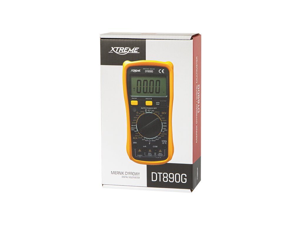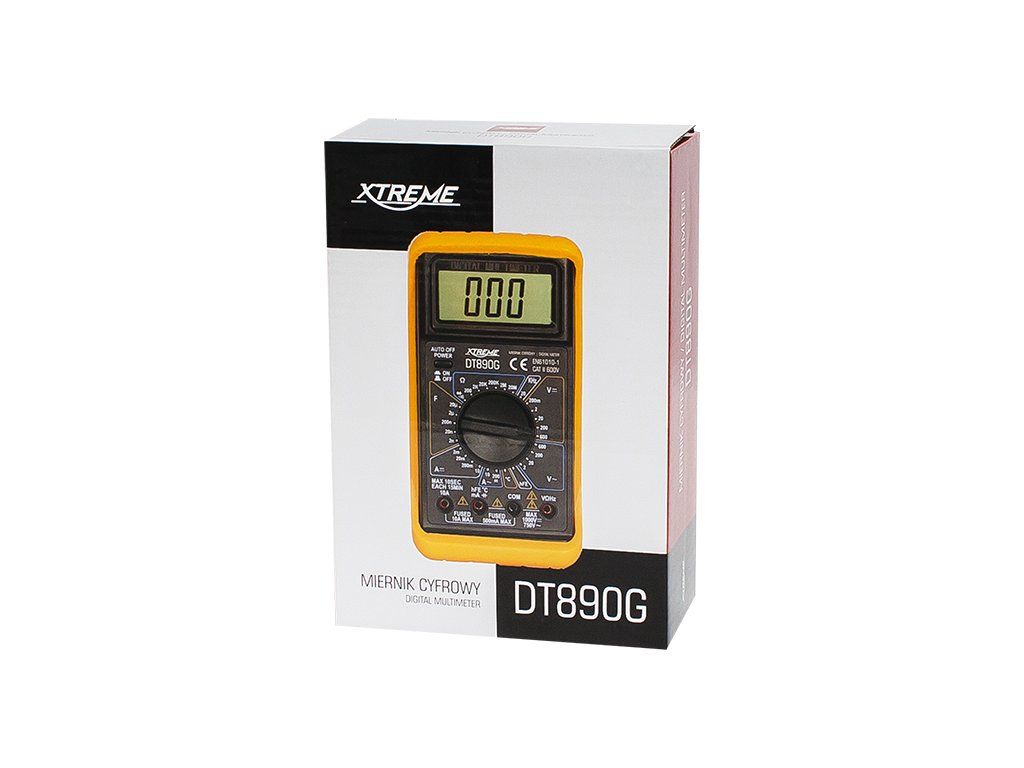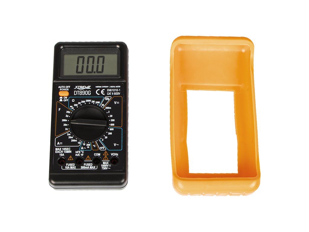 Multimeter 50-107- (DT890G) je univerzálny digitálny merač určený na bežné aj pokročilejšie merania v dielni, domácnosti aj pri hobby elektronike. Ponúka prehľadný LCD displej, praktickú opierku na zadnej strane a ochranný gumový kryt, ktorý zvyšuje odolnosť prístroja pri používaní. Vďaka širokým meracím rozsahom je vhodný na kontrolu napätia, prúdu, odporu, kapacity, frekvencie, teploty aj testovanie diód.