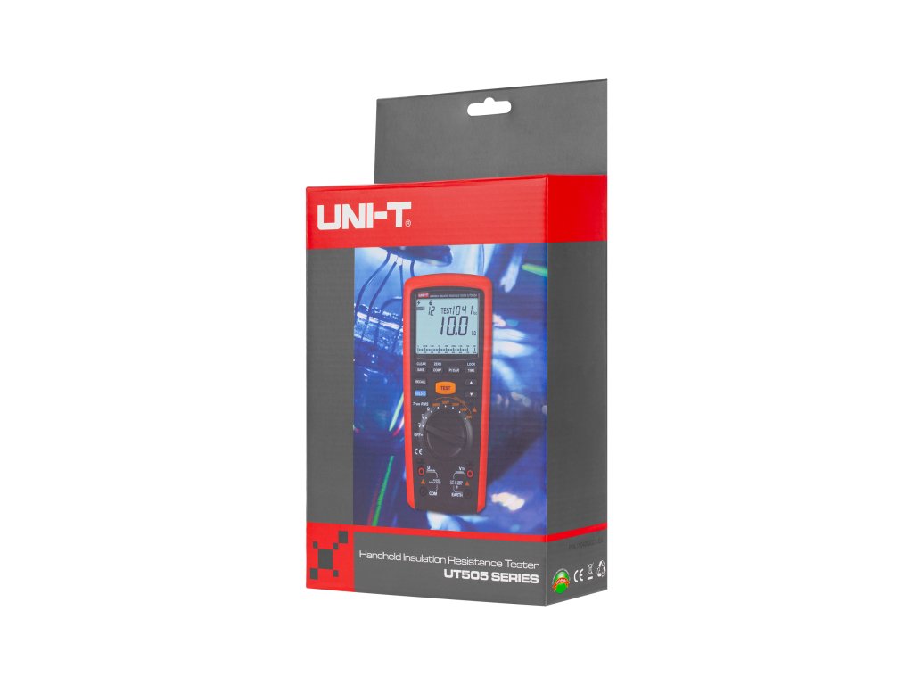 UT505A je vreckový digitálny merač izolačného odporu s funkciami AC TRUE RMS/DC 50V, 100V, 250V, 500V, 1000V a meraním malých odporov. Zariadenie sa vyznačuje vysokou presnosťou a stabilitou. Vďaka svojim praktickým rozmerom, napájaniu z batérie a intuitívnemu ovládaniu je tento prístroj ideálny na použitie vo všetkých podmienkach.
