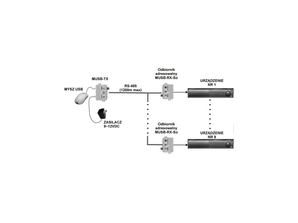 MUSB-1/1/So je zariadením vyvinutým firmou Ewimar, ktoré umožňuje ovládanie digitálnych videorekordérov alebo / a počítačov na vzdialenosť až 1200m pomocou USB myši. Špeciálne navrhnutý algoritmus, používa na ovládanie všetky možnosti myši a prenáša ich pomocou jedného páru krúteného kábla. Ovládanie pomocou MUSB prebieha v reálnom čase a nevykazuje žiadne viditeľné oneskorenie medzi pohybom myši a reakciou kurzora.![]()