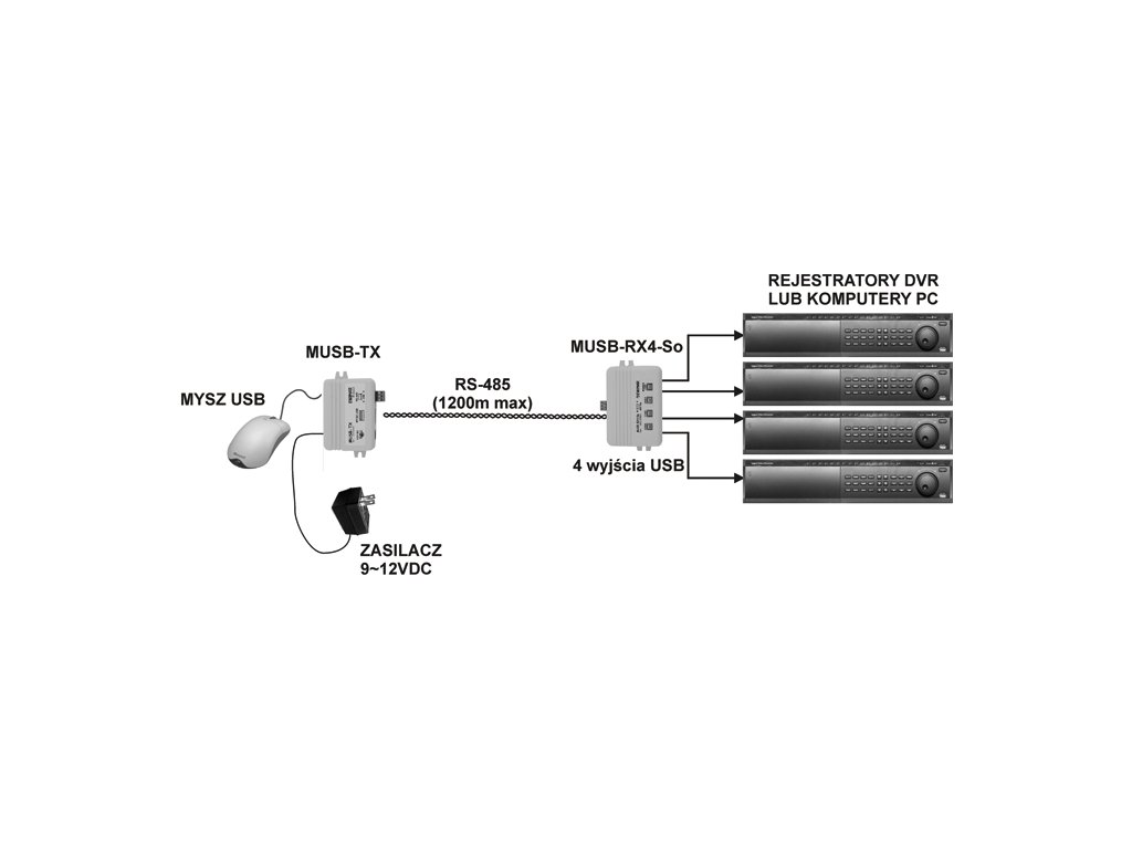 MUSB-4/1/So umožňuje ovládanie od 4 do 8 digitálnych rekordérov videa v systémoch priemyselnej televízie alebo/i počítačov, ako aj iných zariadení, pomocou jednej USB myši. Špeciálne skonštruovaný algoritmus prenosu umožňuje kontrolovať uvedené zariadenia na vzdialenosť až do 1200m pomocou jednej dvojice krúteného páru.