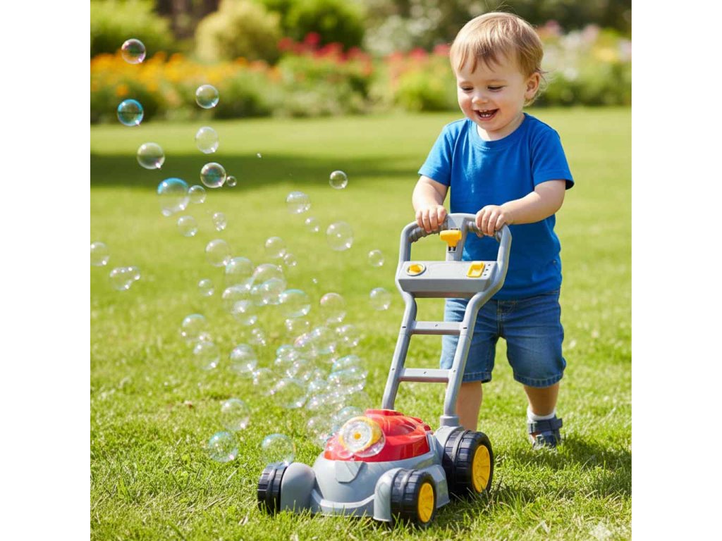 Táto kosačka na trávu vytvárajúcamydlové bubliny bola vytvorená s cieľom poskytnúť radosť z pohybu a premeniť obyčajnú prechádzku na jedinečné dobrodružstvo. Vďaka automatickému vypúšťaniu bublín sa kosačkagenerujúca bubliny neomrzí ani po dlhšej chvíli - dôležité je množstvo farebných bublín a super efekt v očiach batoľaťa. Je tohračka pre deti 3+, ktorá podnecuje k pohybu a podporuje aktívnu hru, navyše má zvukové a svetelné efekty, ktoré ešte viac zaujmú všetky deti.
