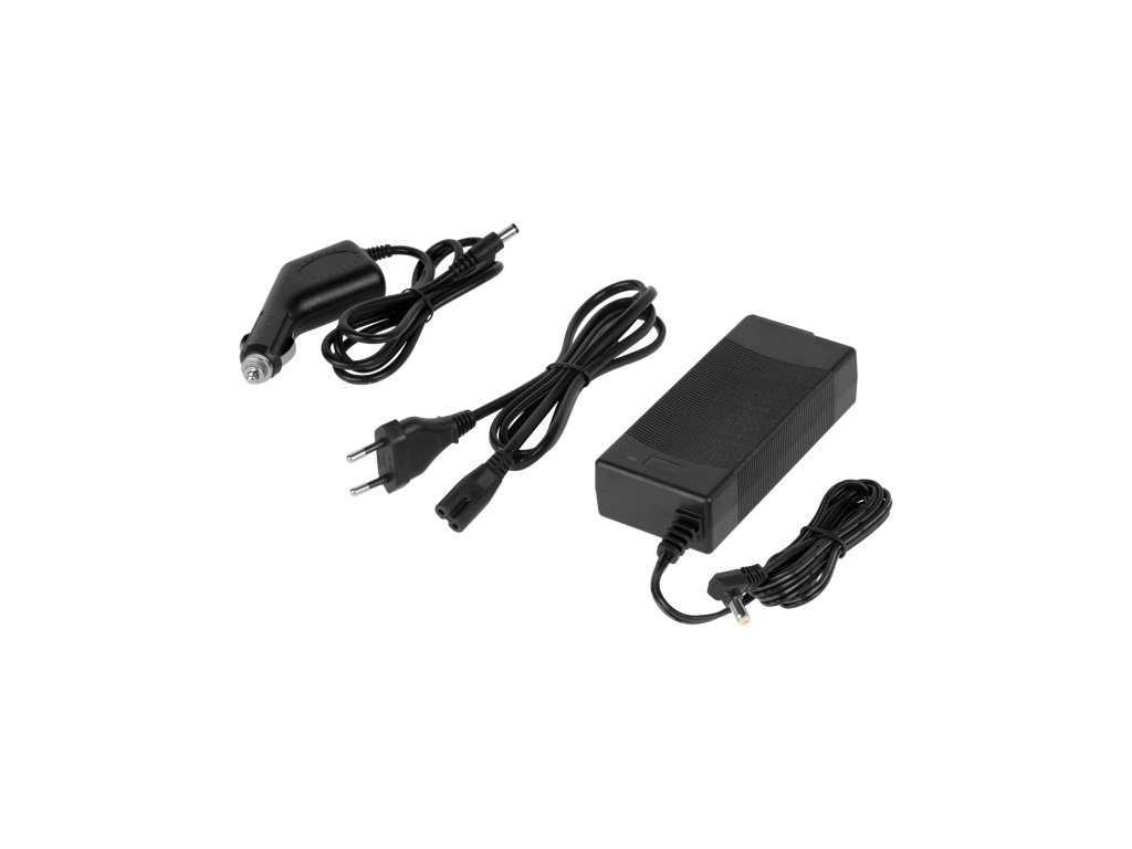 V cene: napájacia stanica, napájací adaptér, autonabíjačka, manuál