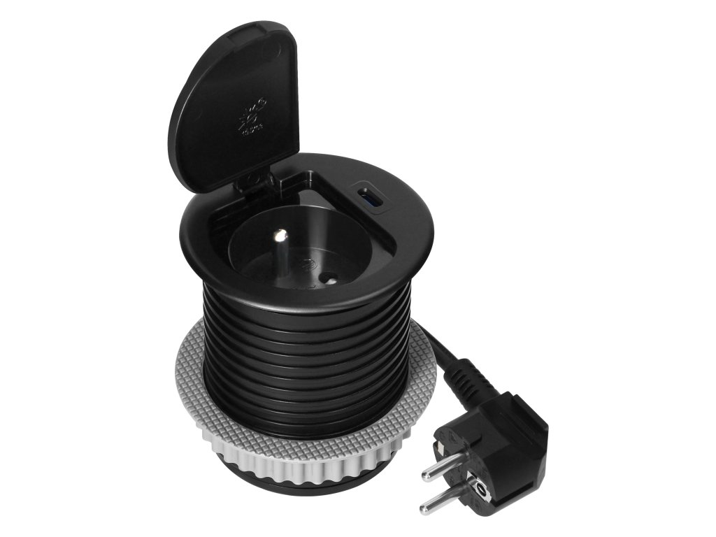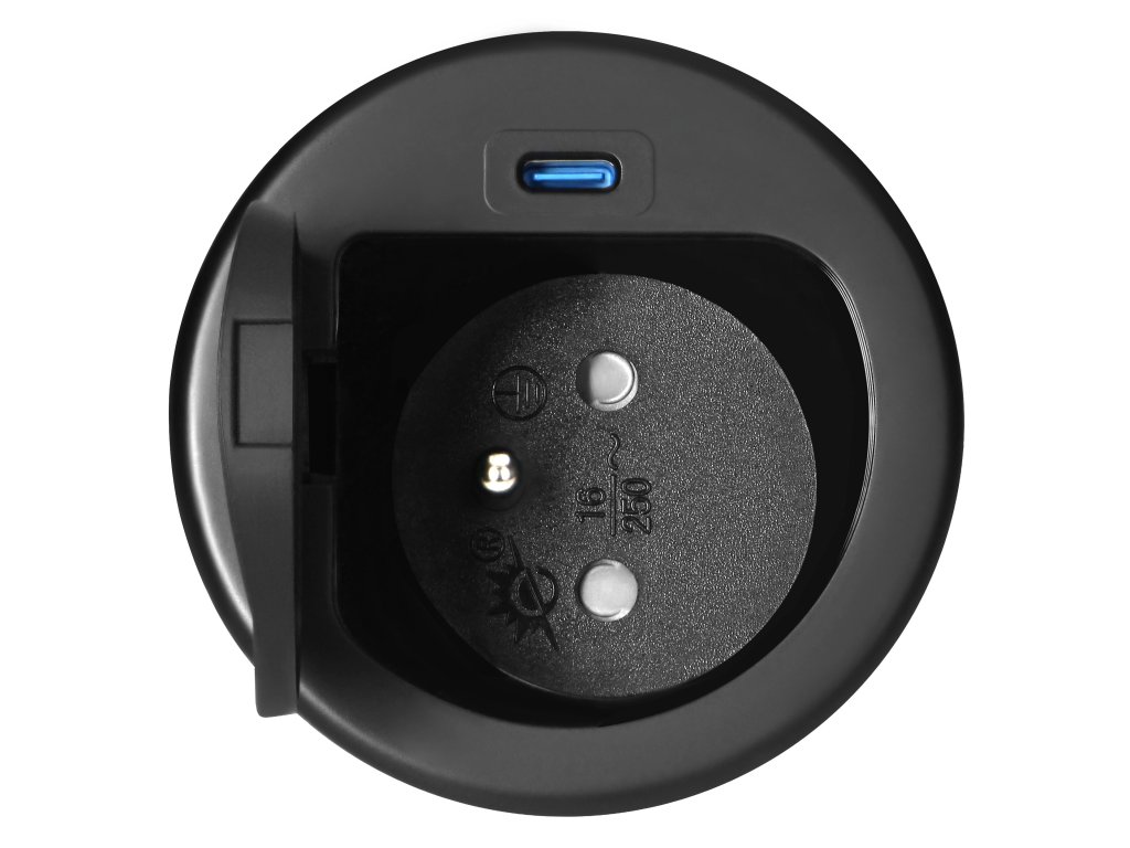 Nábytková zásuvka s USB C nabíjaním, čierna