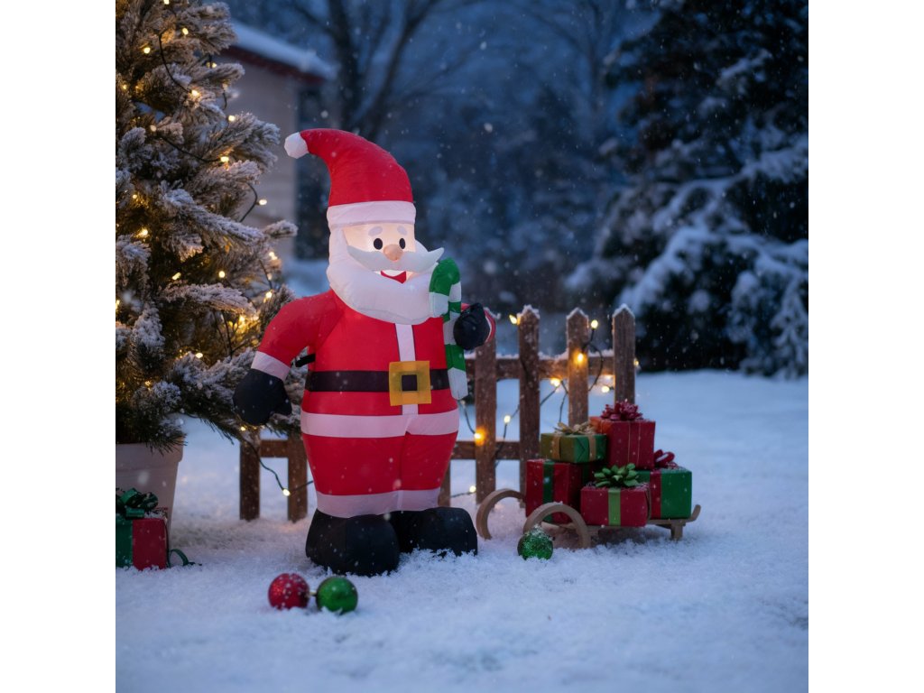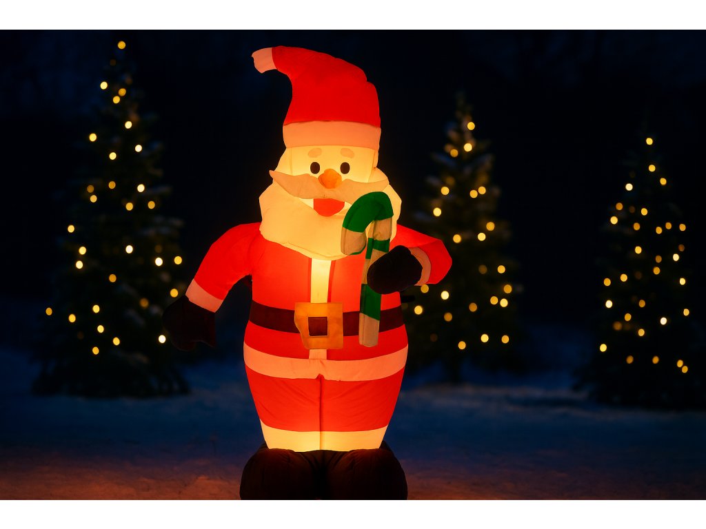 Nafukovací Santa Claus LED vytvorí výnimočnú atmosféru, pri ktorej každý hosť pocíti čaro Vianoc už pri prvom pohľade. Vďaka jednoduchému montáži a úspornému osvetleniu si môžete užívať efekt bez námahy a vysokých nákladov.