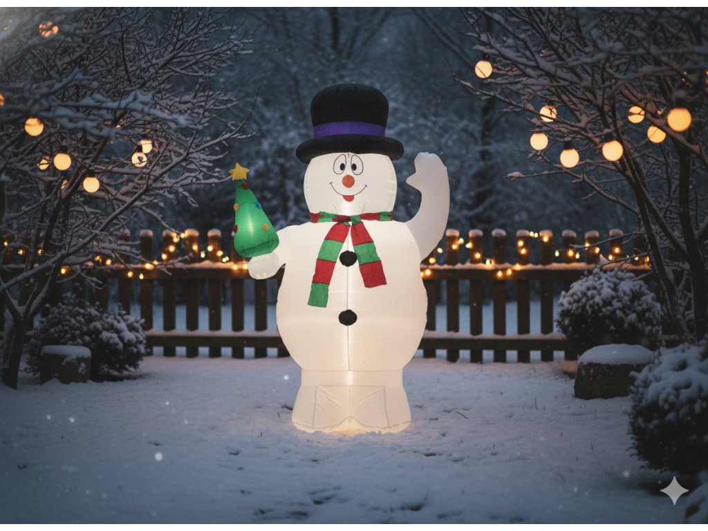 Vyberte si kvalitu, efekt a radosť v rozmere XXL! Nafukovací snehuliak LED 240 cm je dar pre oko a dušu – ideálny pre každého, kto miluje sviatočnú atmosféru vo veľkom štýle. ???