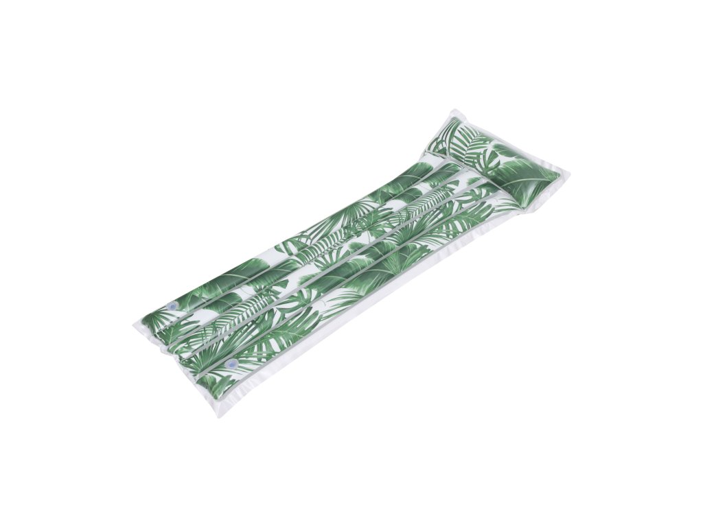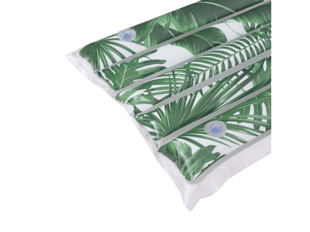 Motív listov na bielom pozadí dodáva matracu výnimočný charakter. Nie je to len praktický gadget, ale aj módny doplnok, ktorý sa dokonale hodí do atmosféry letného relaxu. Rozmery 171 x 66 cm a hrúbka 22 cm poskytujú pohodlnú ležiacu pozíciu – ako na vode, tak na súši.