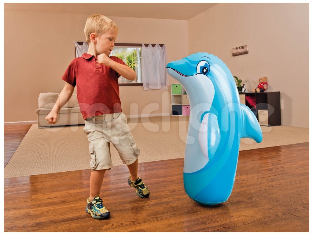 Stačí nafúknuť hračku a do spodnej nádrže naliať vodu. Po každom údere sa vráti do pôvodnej polohy!