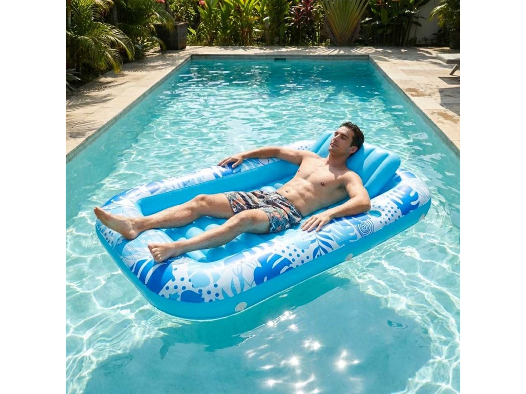 Priložený nafukovací vankúš je dokonalým mäkkým detailom vo vašom relaxačnom priestore- len namiesto hudby máte vlny a ticho. Ide opohodlný nafukovací matrac, ktorý sa hodí na opaľovanie, plávanie a dlhé chvíle odpočinku. Tento nafukovací matrac na ležadlo sa osvedčí pri bazéne aj na pláži, vždy keď záleží na štýle.
