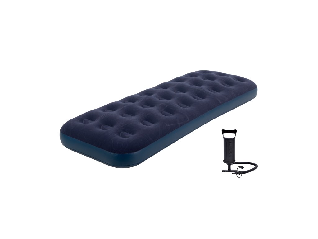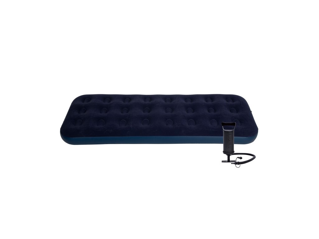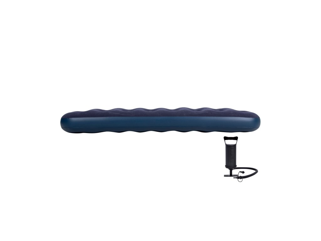 Súčasťou je praktická ručná pumpa a opravná záplata – vďaka tomu môžete matrac okamžite pripraviť na použitie a mať istotu, že sa osvedčí v každej situácii.