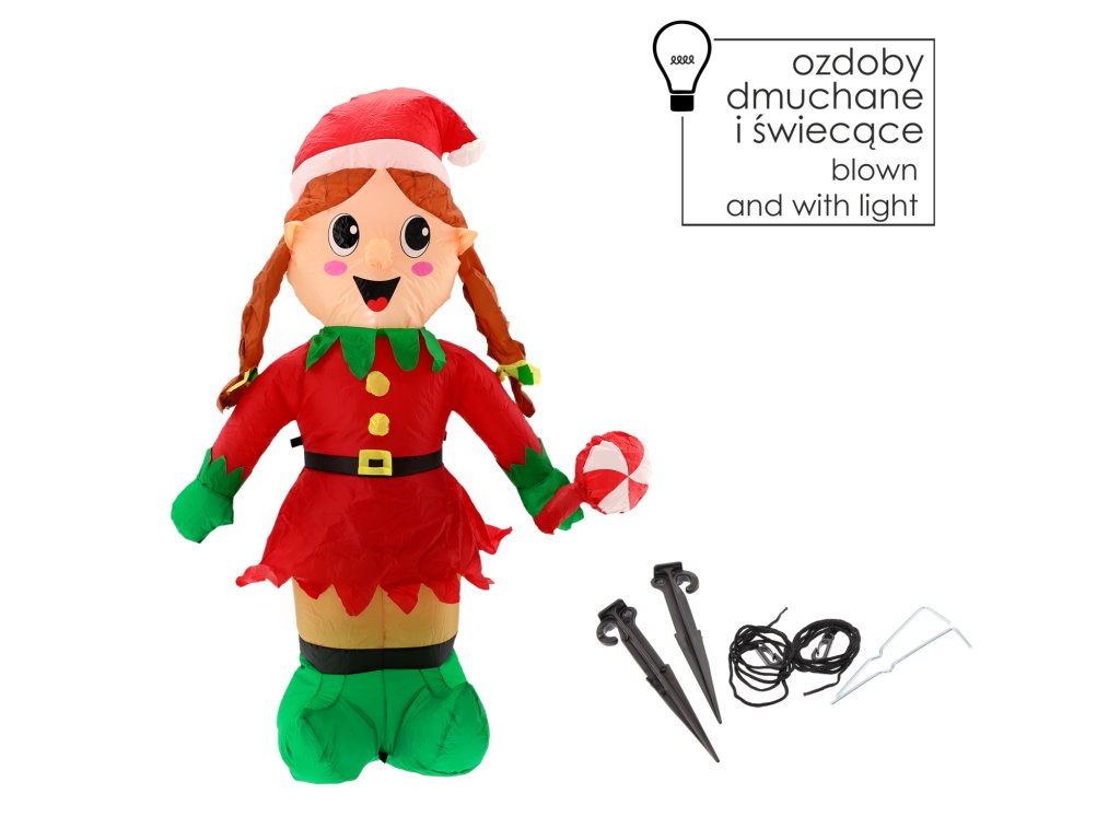 Vstúpte do svojho domova s magickou atmosférou sviatkov s nafukovacou elfkou dievčatkom LED o výške 150 cm! ????? Táto rozkošná pomocníčka Santa Clausa upúta zrak každého hosťa a urobí vaše sviatky rozprávkovými. Ideálna na umiestnenie v záhrade, pred domom alebo v obývačke – všade tam, kde chcete cítiť sviatočné teplo a radosť. ??