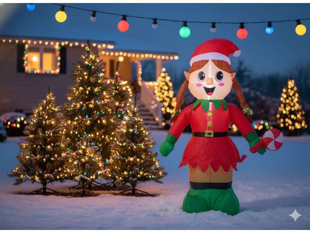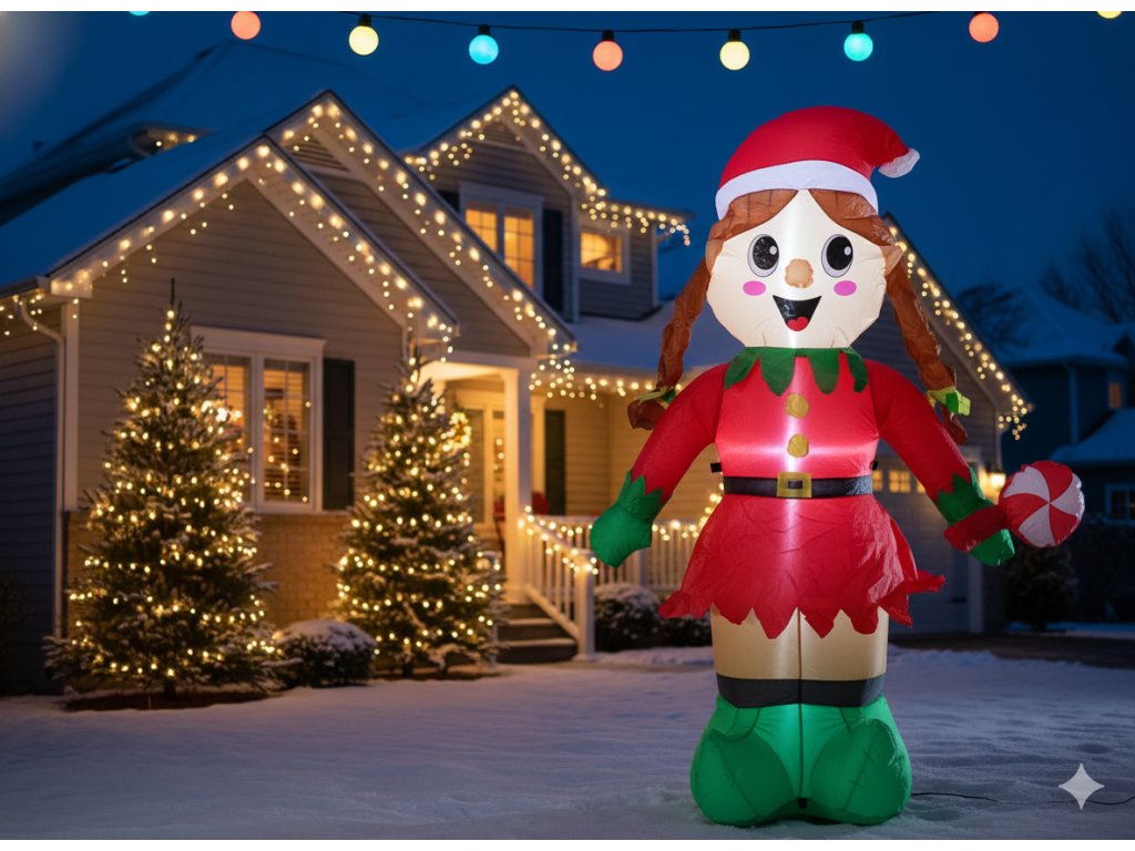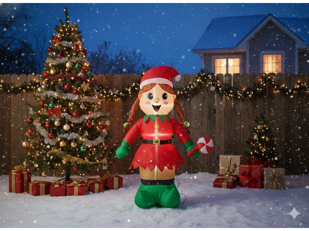 Pretože je to viac než dekorácia – je to radostný symbol sviatkov, ktorý prináša úsmev a pozitívnu energiu! ?? Nafukovacia Elfka Dievčatko LED upúta pozornosť detí a dospelých, vytvárajúca unikátnu atmosféru pri každom zapnutí svetielok. Ideálna pre tých, ktorí chcú dodať svojmu priestoru výnimočný charakter a teplo.
