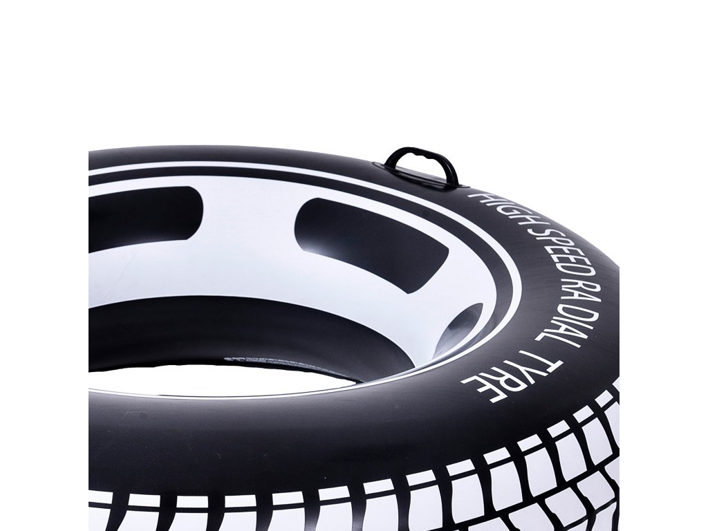 Koleso vyniká čiernou farbou a realistickým vzorom dezénu pneumatiky, čo mu dodáva jedinečný, originálny vzhľad. Je to skvelá voľba pre chlapcov, mládež a dospelých, ktorí chcú spojiť zábavu s výrazným štýlom. Skvele sa prezentuje na pozadí vody a pridáva charakter každej letnej dobrodružstve.