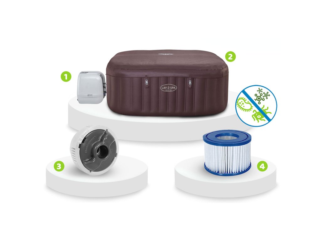 Voda v spa bude vždy čistá - všetko, čo potrebujete, pridávame v súprave:- Vstavané čerpacie čerpadlo