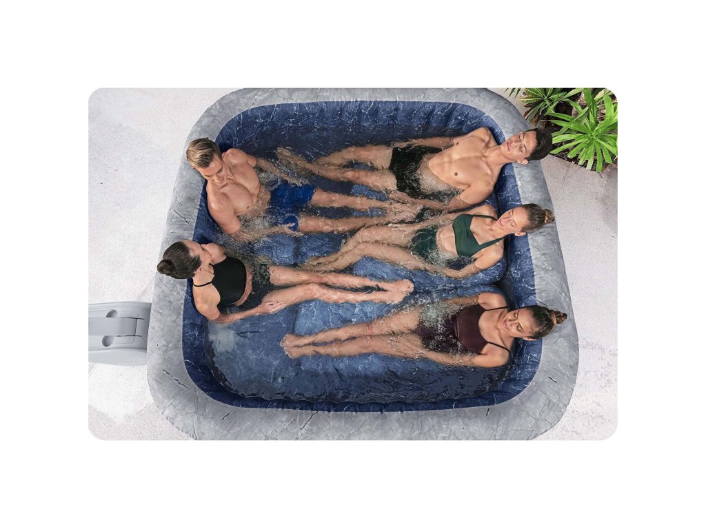 Nafukovacia podlaha SPA je vyrobená z mäkkého materiálu, ktorý rovnako ako kryt, plní izolačnú funkciu od podkladu, takže voda sa nevychladzuje tak veľmi, ako pri štandardnom vinilovom spodku.
