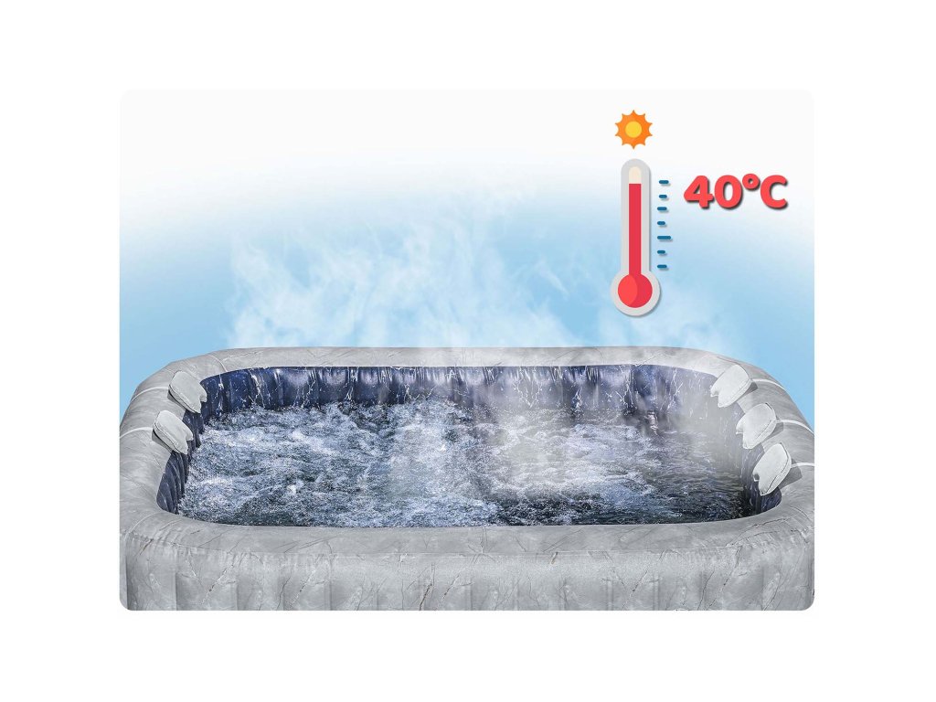 Voda ohriata na 40°Teraz bude voda vo vašom súkromnom SPA teplá, vždy keď si to budete priať.
