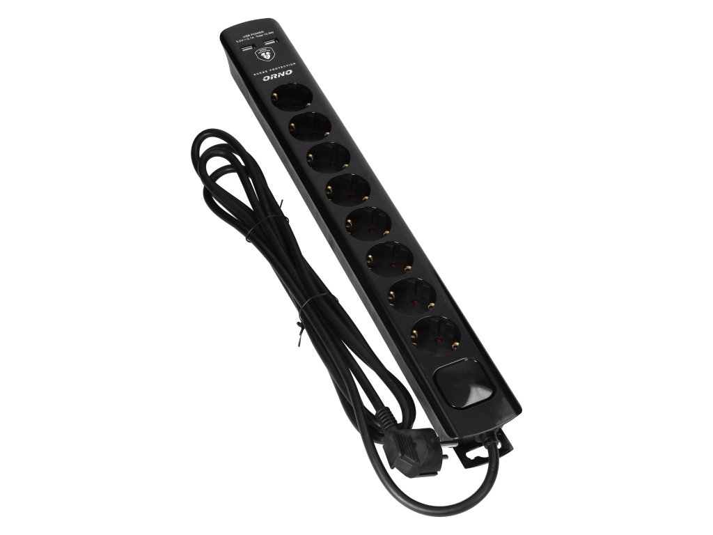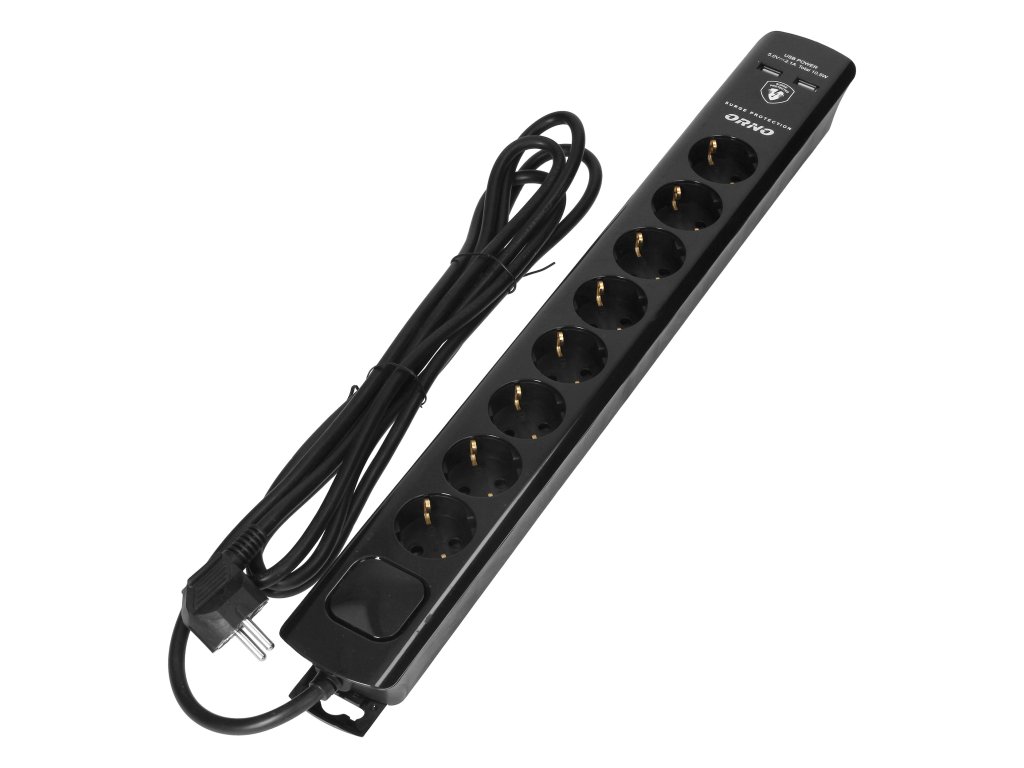 Napájacia lišta 8x, prepäťová ochrana, USB, 3m