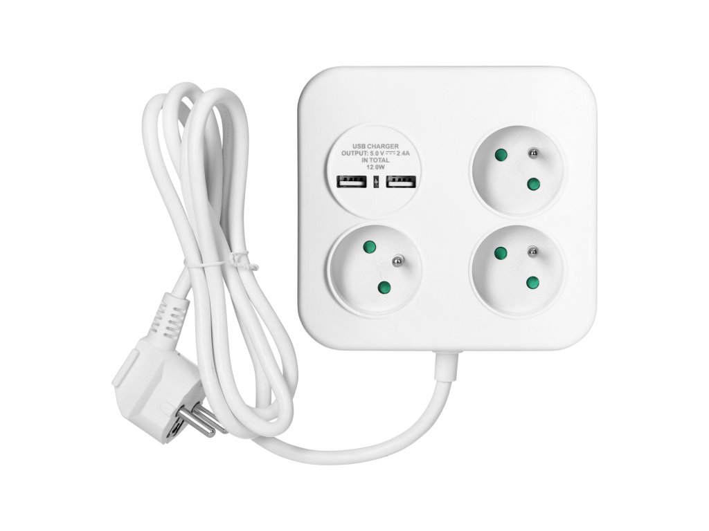 Napájacia lišta s USB nabíjaním 3 zásuvky 1,4m