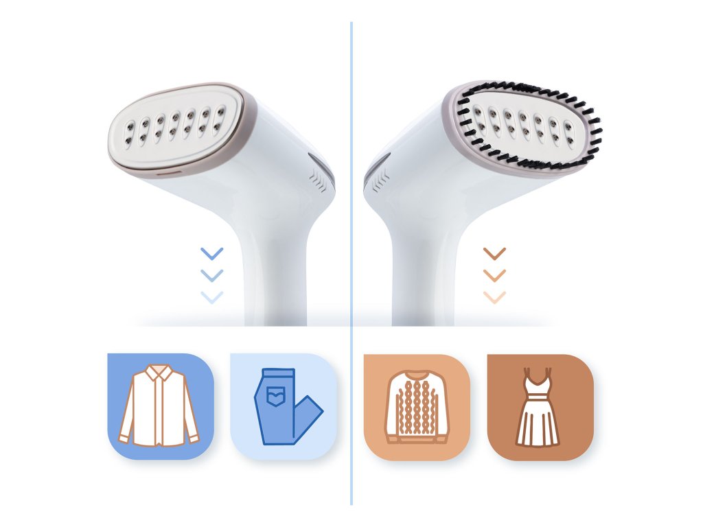 - S nástavcom s vlasmi – na jemné materiály: Chráni jemné tkaniny, ako sú pleteniny, hodváb alebo tenké šaty.