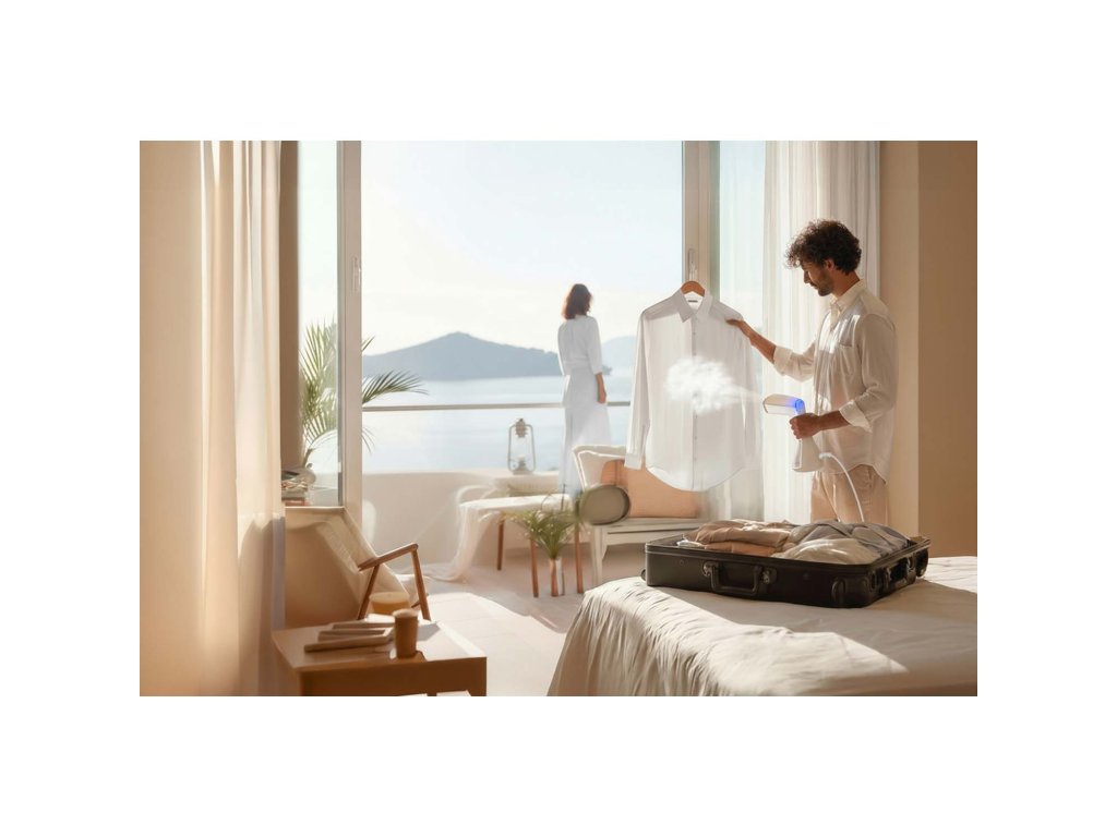 Rozlúčte sa s únavným, časovo náročným rozkladaním žehliacej dosky a rozohriatím žehličky. Vyžehlite svoje odevy jedným ťahom, hneď na vešiaku!