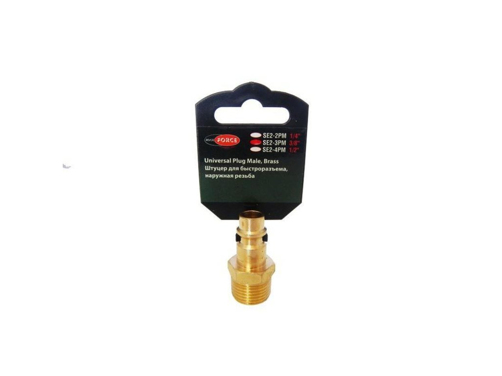 Vonkajší závit 3/8". Mosadzný korpus zabezpečuje vysokú odolnosť a odolnosť voči korózii, čo umožňuje použitie rýchlospojky v širokom rozsahu pracovných podmienok.