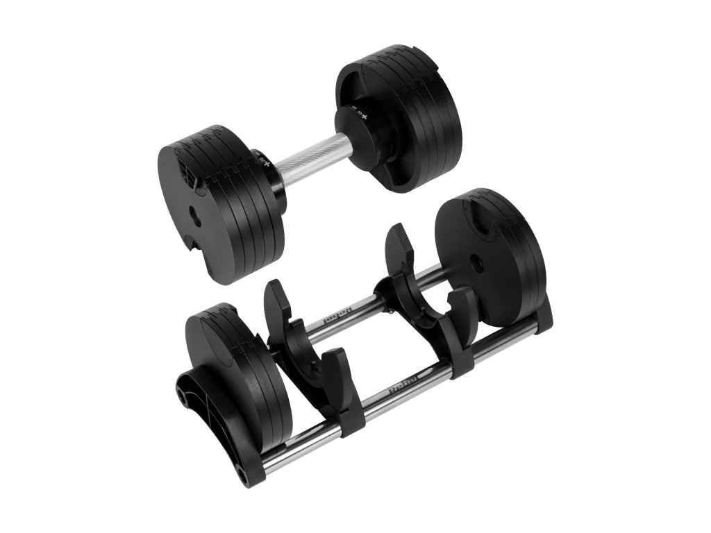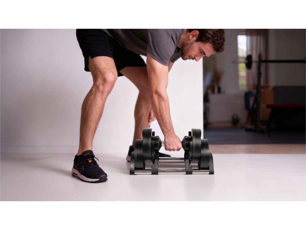 Nastaviteľná činka 36 kg Rebel Active je moderné riešenie pre ľudí, ktorí chcú trénovať efektívne bez toho, aby zaberal veľký priestor. Nahrádza súpravu klasických činiek, čím šetrí miesto a umožňuje rýchly prístup k rôznym úrovniam záťaže. Ideálna pre domácu posilňovňu, umožňuje komplexný tréning celého tela – od bicepsov, cez tricepsy, po ramená a chrbát.