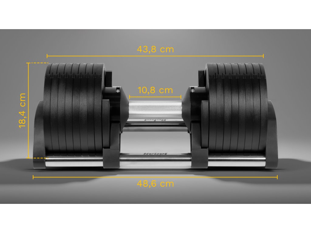 Systém automatickej regulácie umožňuje rýchlu zmenu hmotnosti v 12 konfiguráciách – od 2 do 36 kg – prostredníctvom jednoduchého otočenia rukoväte. Vďaka tomu nastavené činky Rebel Active nahrádzajú celú súpravu klasických záťaží, čím šetrí miesto doma a čas tréningu. Presný mechanizmus blokuje vybranú záťaž, zaručujúc plynulosť a bezpečnosť každej tréningovej session.