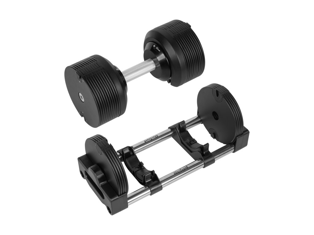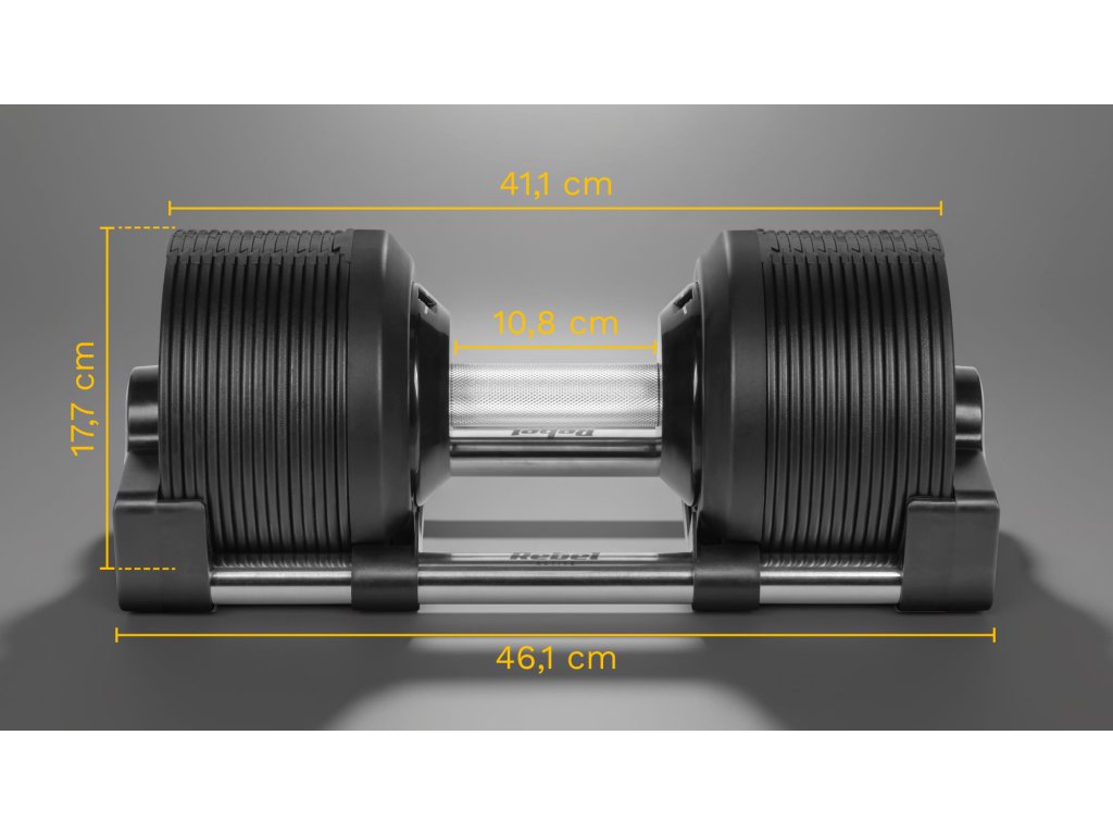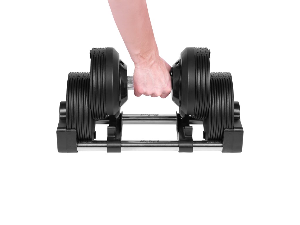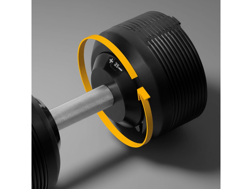 Moderný systém regulácie umožňuje automatickú zmenu záťaže prostredníctvom jednoduchého otočenia držadlom. Vďaka tomu za pár sekúnd vyberiete vhodnú váhu od 5 do 36 kg, bez nutnosti odskrutkovania diskov. S 32 možnými nastaveniami prispôsobíte intenzitu každému cvičeniu. Nastaviteľná činka Rebel Active umožňuje zachovať plynulosť tréningu a maximálne pohodlie používania.