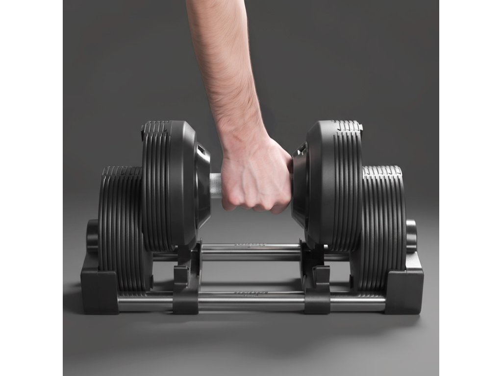 Inovatívny systém regulácie umožňuje automatickú zmenu záťaže v rozsahu od 5 do 36 kg. Stačí otočiť držadlom, aby ste prispôsobili váhu druhu cvičenia – rýchlo, plynulo a bez nutnosti odobratia diskov. Toto riešenie výrazne skracuje čas tréningu a umožňuje zachovať jeho intenzitu. Nastaviteľná činka Rebel Active ponúka až 32 konfigurácií, ideálnych na progresívne zvyšovanie sily.