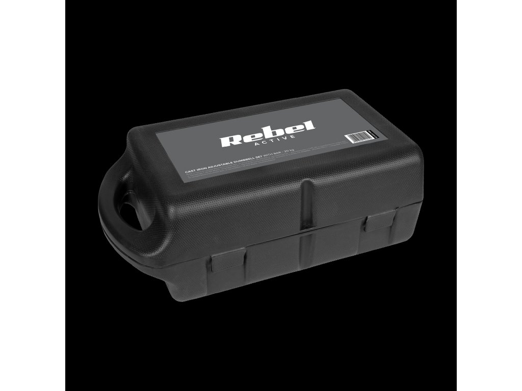 Liatinové činky v kufri s tyčou, súprava 20 kg Rebel Active